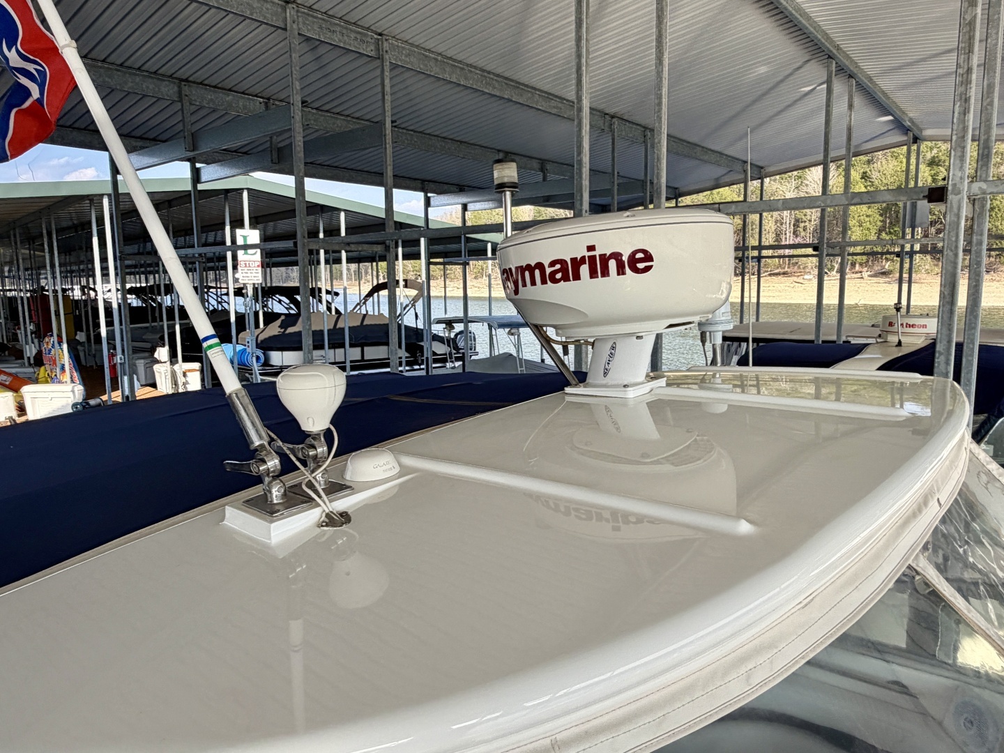 Double Width Helm Seat w/Bolster, Standard Horizon VHF Radio, RayMarine C80 GPS/Chartplotter/Radar,