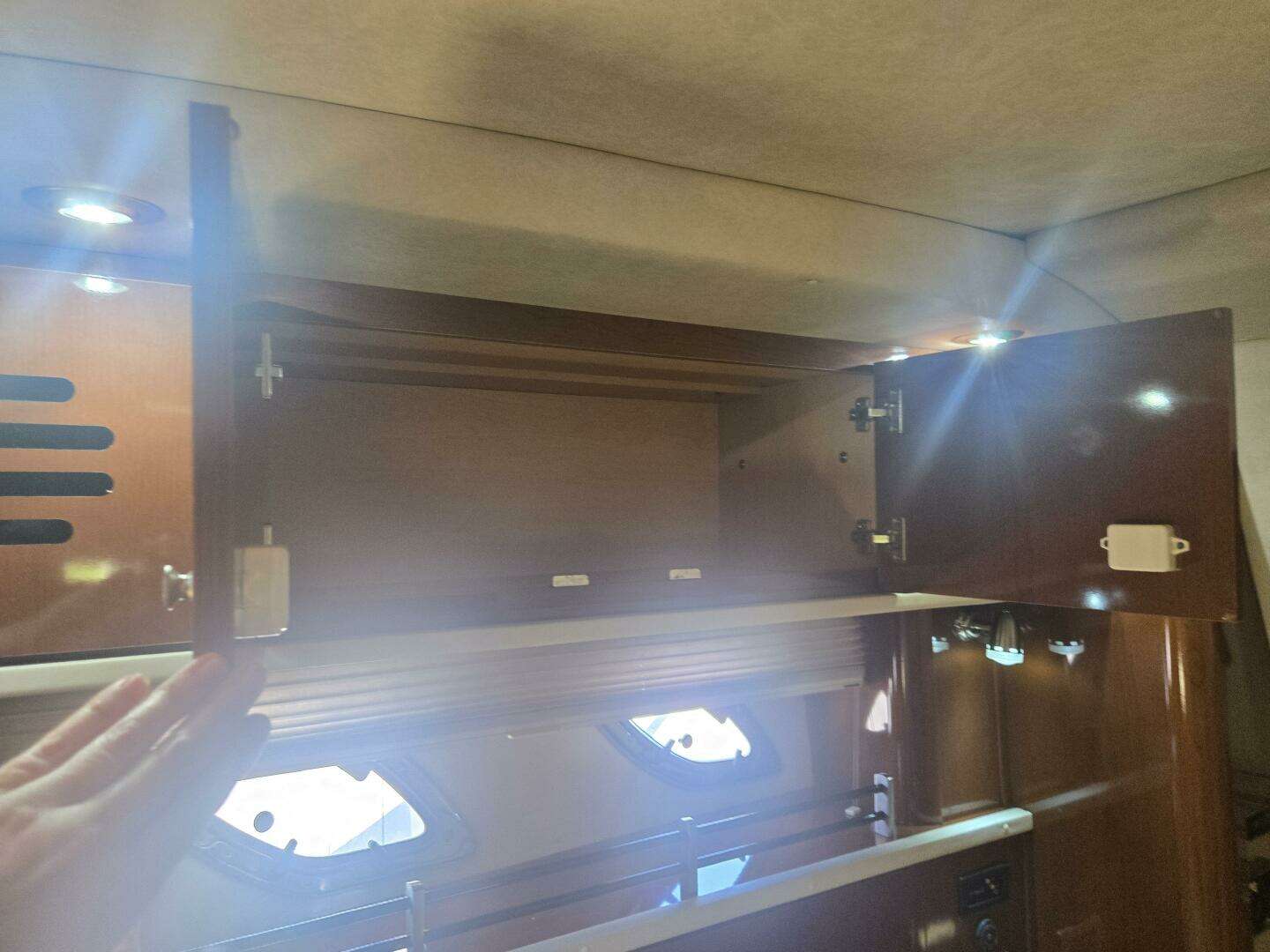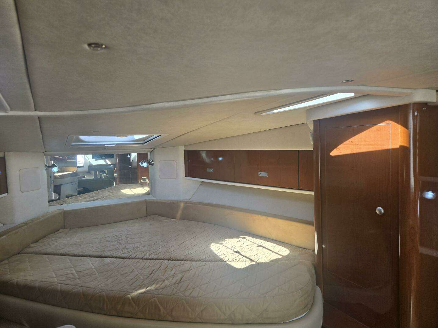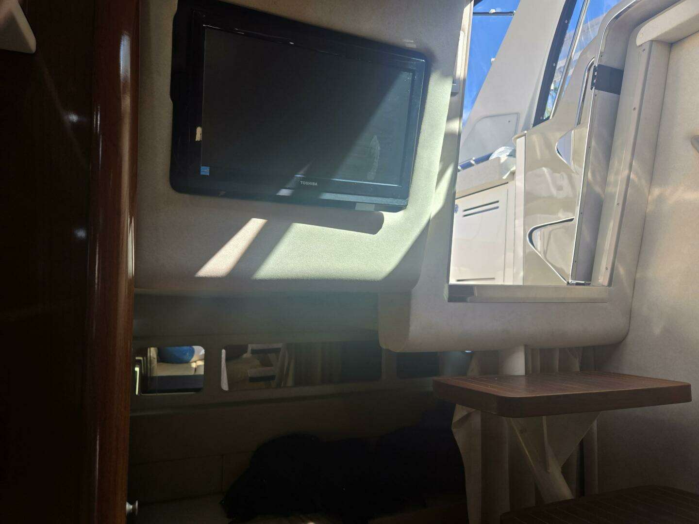 - Forward V-berth with privacy curtain, storage, & TV/DVD