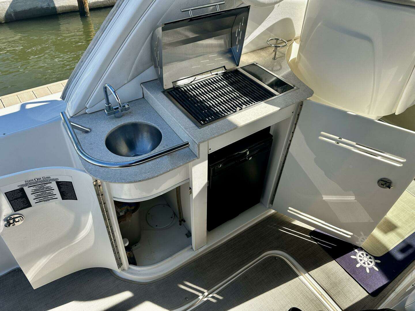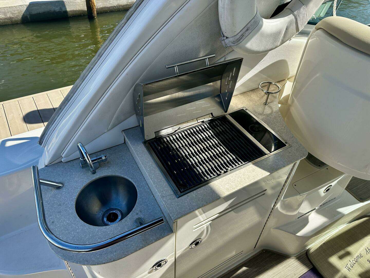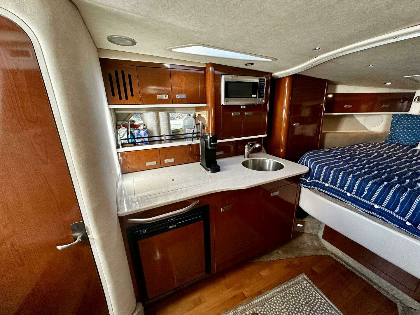 This 2010 Sea Ray 350 Sundancer is a cruisers dream. Powered by Twin V-Drive Mercruiser 8.1L Horizons with Digital Shift and Throttle and only 434 hours at the time of listing. The generous dimensions of this express-style boat make it exceptionally qualified for cruising and entertaining, and a roomy interior with forward V-berth, big mid-stateroom and convertible salon sofa can sleep six in comfort. Plus a full galley and head, and a 26-inch flatscreen TV with remote DVD player.