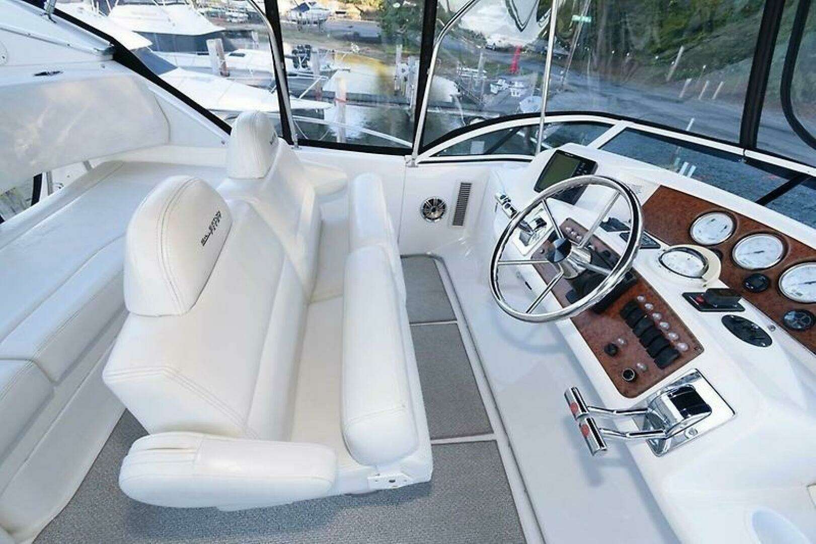 The Silverton 35 Motor Yacht is as luxurious as the 45, but in a smaller, more economical package. Beautiful cherry woods and genuine Corian abound in this Silverton. Two full staterooms ensure privacy, two full heads with stall showers mean convenience, and an entertainment-size salon and galley complete the package.