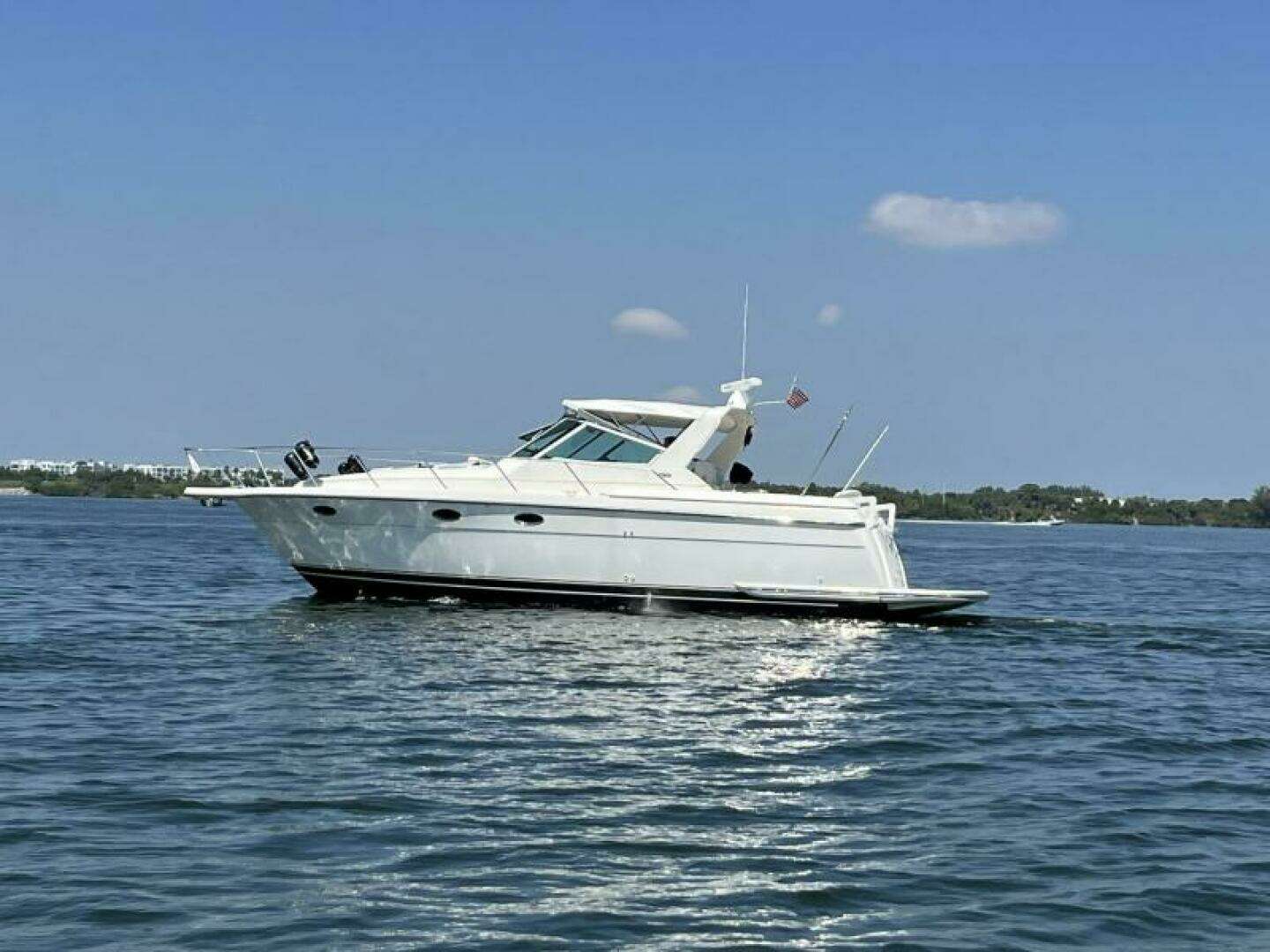 Introducing the stunning 1995 Tiara Yachts 3500 Express, a remarkable cruiser that seamlessly blends performance and comfort. With an overall length of 35.67 feet, this vessel features a robust fiberglass hull in a modified Vee shape, ensuring stability and smooth handling on the water. Powered by twin MerCruiser 8.1 Fresh Water Cooled engines, each delivering an impressive 375 horsepower, the Squall Line promises exhilarating speed and reliability, with only 244 hours of use. The direct drive configuration enhances responsiveness, making it a joy to operate. This cruiser is built for adventure, featuring essential amenities and a design that balances functionality and style. Whether you're planning a weekend getaway or a day on the water, the Tiara 3500 Express offers an inviting space to relax and enjoy the journey. Experience the thrill of cruising with this exceptional vessel, ready to create unforgettable memories.