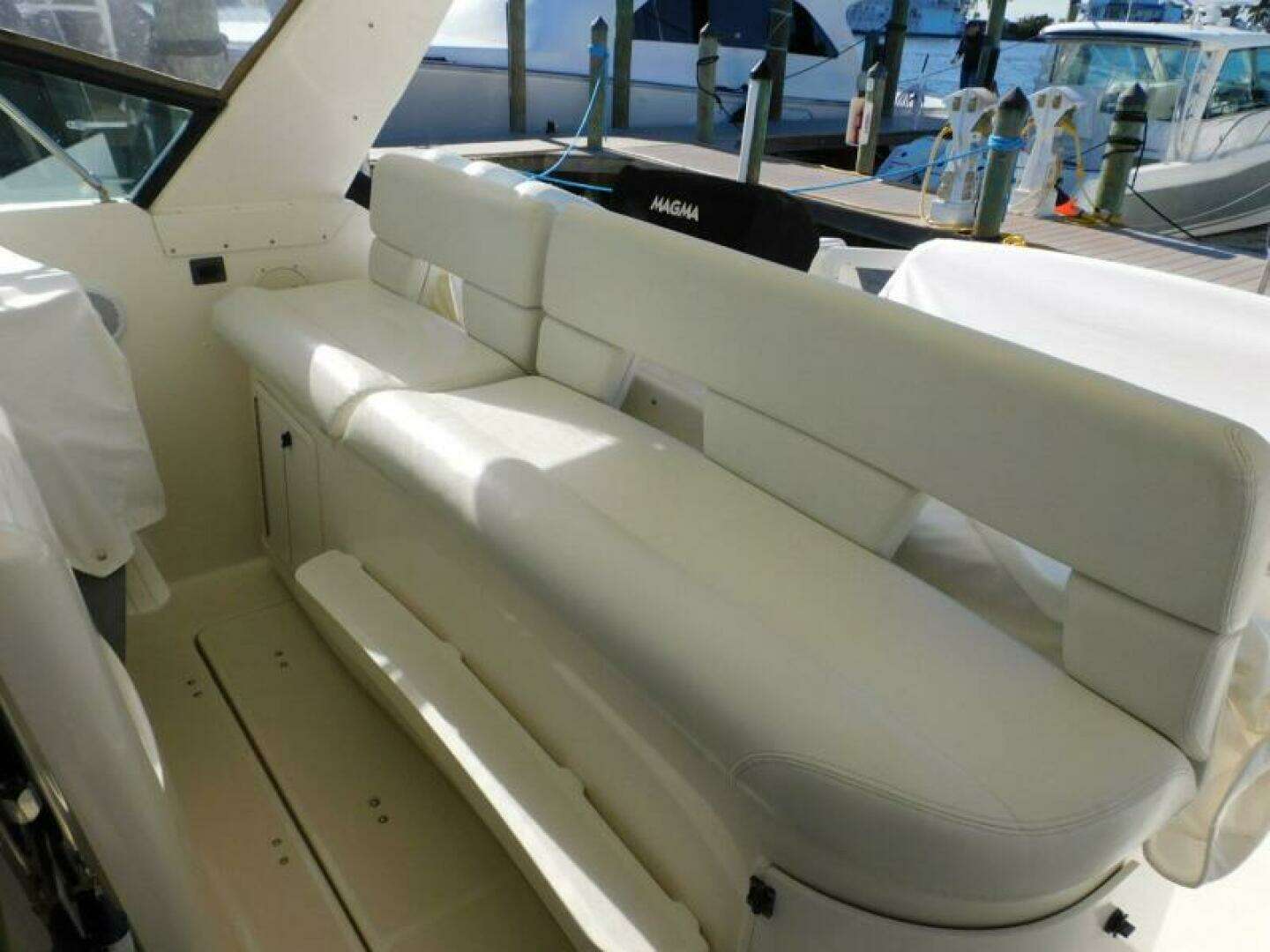 "Squall Line" is an exceptionally well-kept Tiara, all fabrics outside and inside have been taken care of, the engine room is spotless and well thought out with newer 2019 and 2024 freshwater cooled 8.1 Mercruisers. The generator is a 2019 with only 164 hours, this boat shows really well and does not look her age.