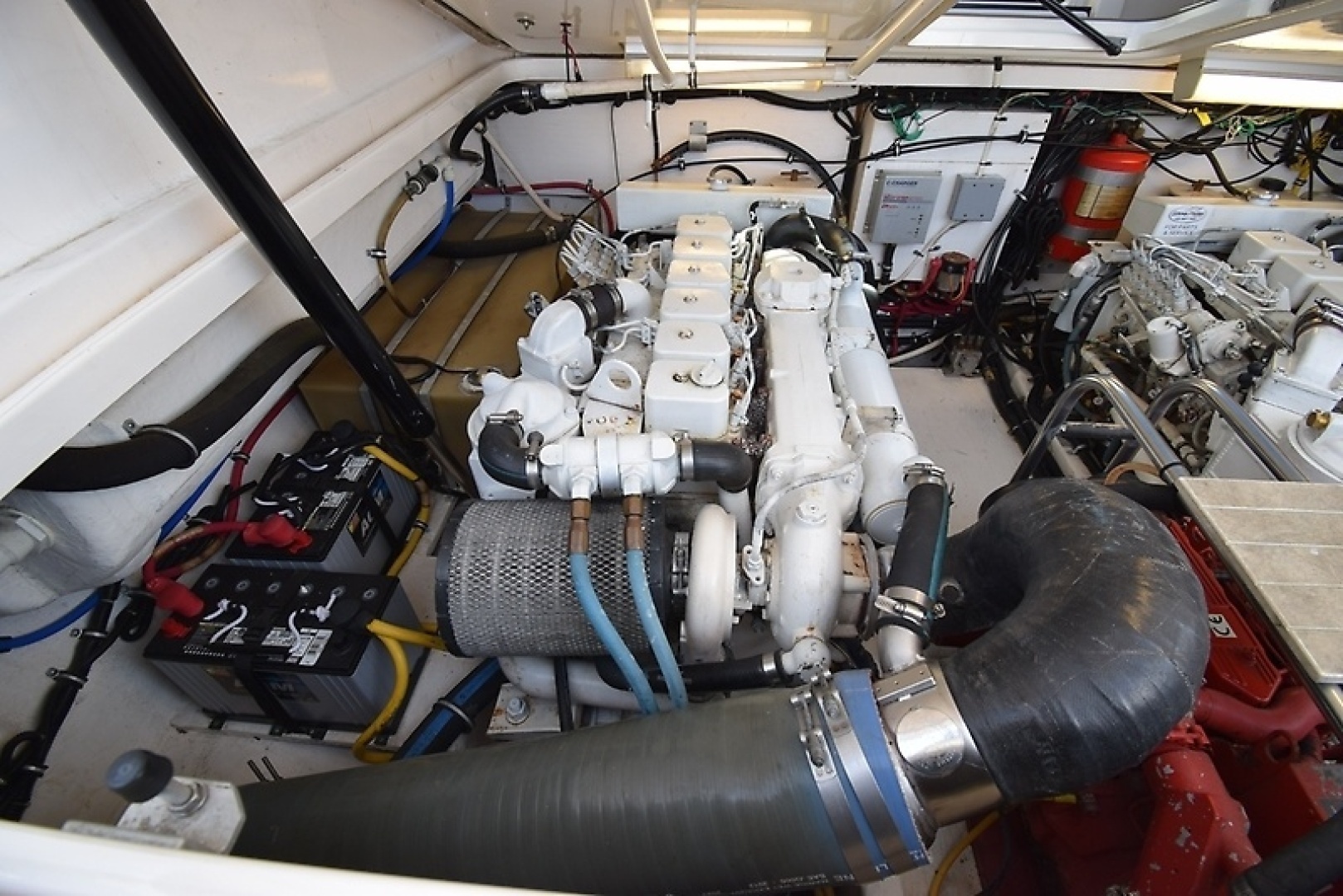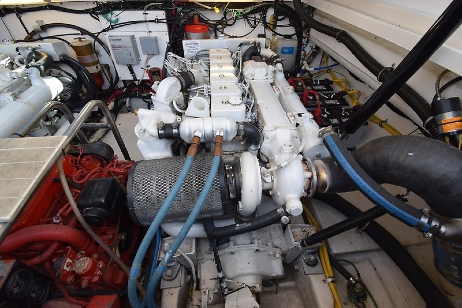 Purchased 4-8-2020. Twin Cummins 6BTA 5.9 engines 370 HP each, Direct Drive with ZF Transmissions. 320 Port Hours , 328 Starboard Hours. Westerbeke 5KW Generator. Boat had a regular Survey and Mechanical Survey. Above Average Condition noted. Boat was hauled and cleaned with new Zincs. After Coolers, Heat Exchangers, Transmission Coolers and Generator Heat Exchangers pulled Cleaned and Pressure Tested. Transmission Fluid was changed. Fuel Injectors were pulled cleaned and tested.