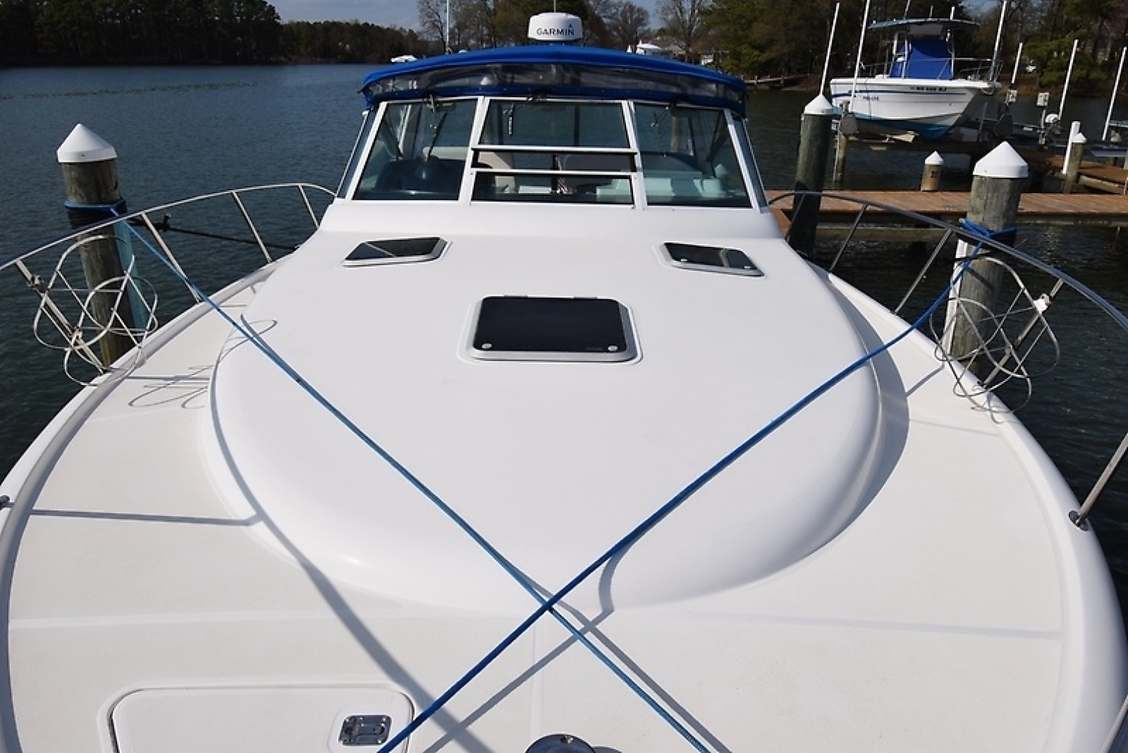 Beautiful second owner Tiara 35 Open with complete and up to date maintenance on her Cummins engines. Pride of ownership is evident throughout the vessel. The original owner kept her in a covered slip in Virginia until the present owners bought her in the spring of 2020 and brought her to Maryland. She went to Florida and back in 2024/2025 for the winter season. Thoughtful additions include a custom charging station in the chart table, a second charging port at the helm, new EM-Trak AIS Transceiver, robust canvas options including a sunshade and cockpit mooring cover and new AGM batteries and 60 amp ProNautic charger in the summer of 2024. A complete timeline of her maintenance history is listed below in the maintenance details section. She has been well loved and well cared for since new.