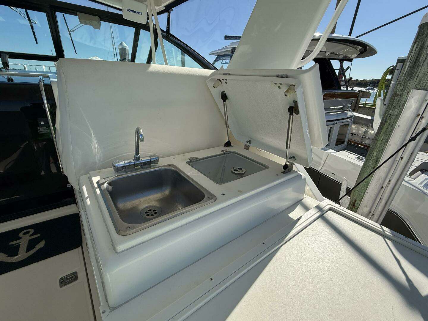 This 2003 Tiara 3500 has been exceptionally well maintained and is powered by twin 370hp Cummins direct drive diesel engines with only 1,100 original hours. Cared for by a knowledgeable owner, this boat reflects pride of ownership throughout with an immaculate engine room and consistent mechanical updates. A 5kW Westerbeke diesel generator with just 680 hours ensures reliable power away from the dock, while outriggers, an electric windlass, and a factory hardtop add to its versatility and appeal. Comfort is assured with air conditioning and reverse cycle heat, and the boat was just upgraded with brand-new canvas and isinglass in 2025. Electronics include a Raymarine chartplotter, GPS, and autopilot, with entertainment provided via a Fusion stereo system. Currently in the water and easy to view, this Tiara 3500 is a must see for anyone seeking a well equipped, meticulously maintained vessel. Call today!