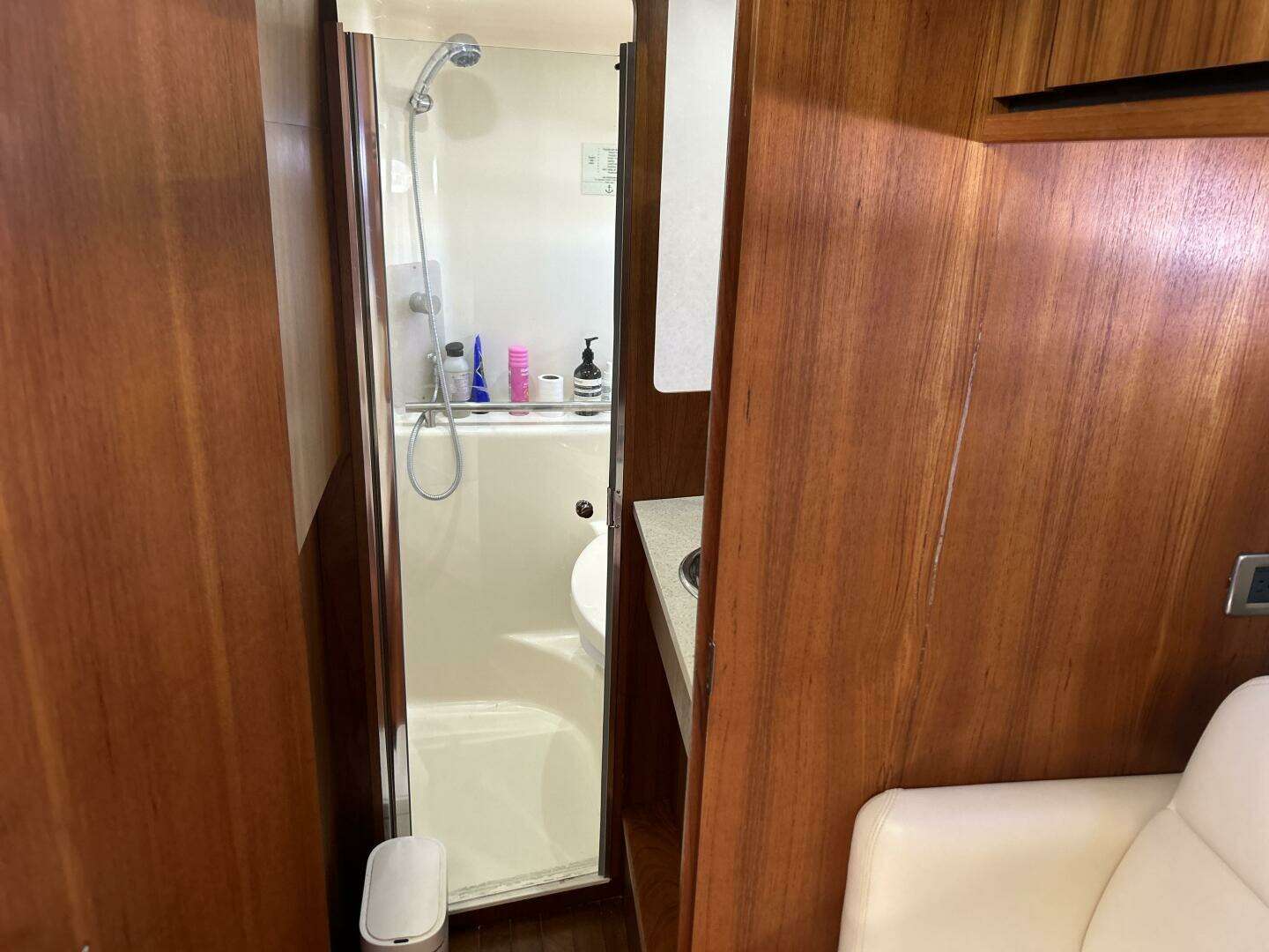 - Spacious head with stall shower
