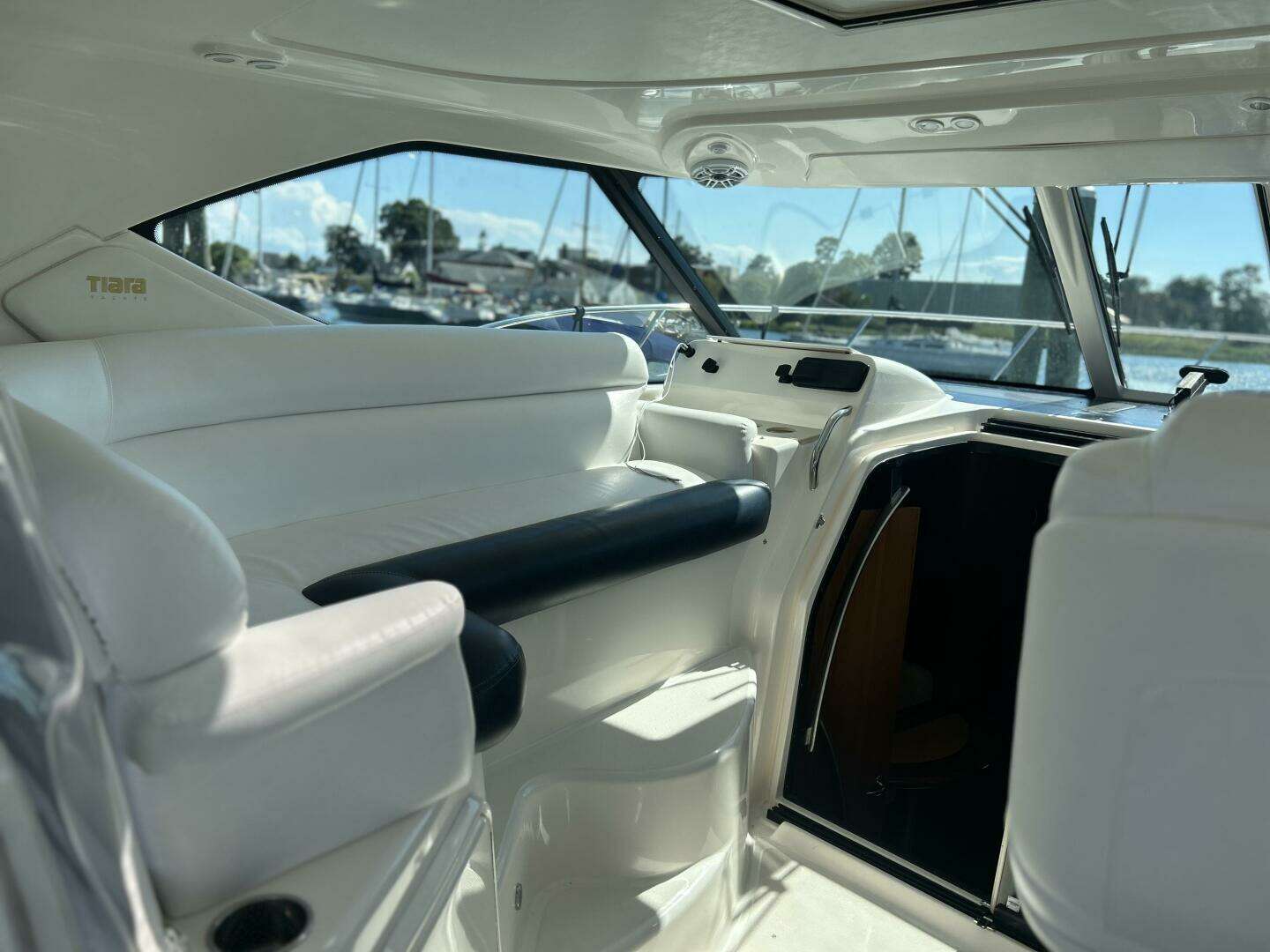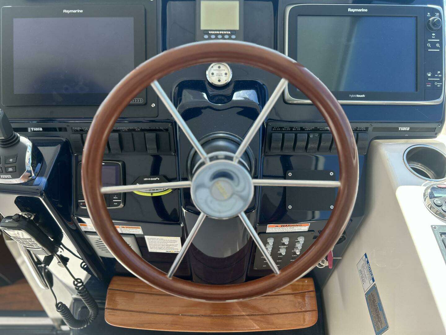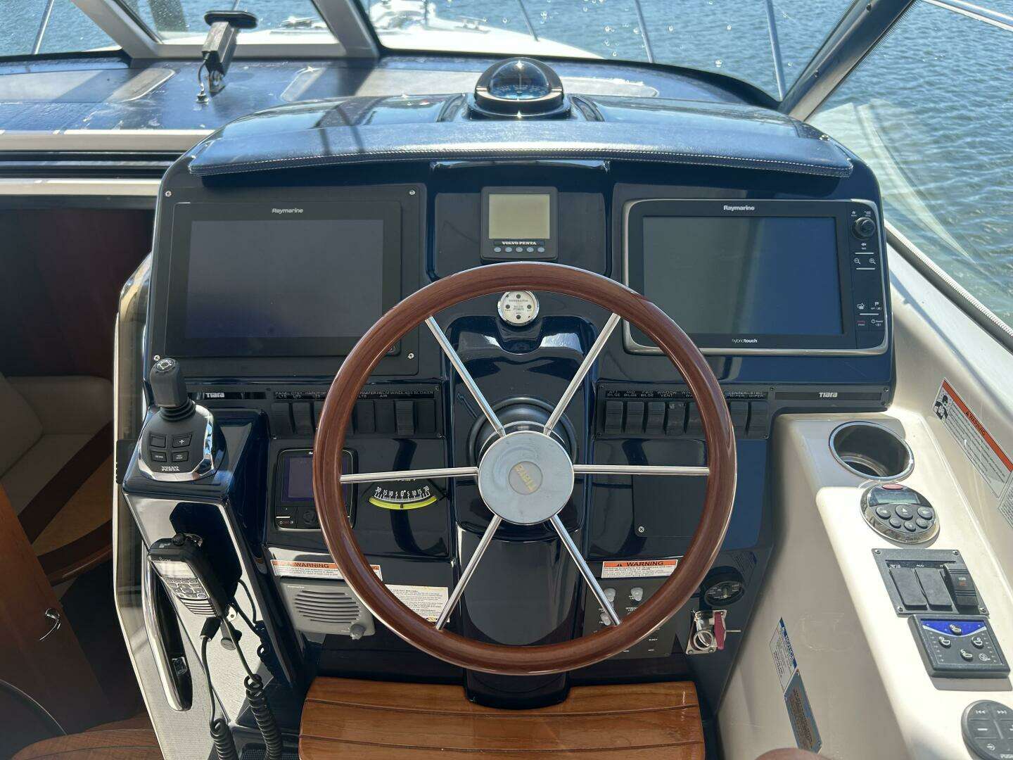 - Tiara helm console with mahogany steering wheel & electric powered captains seat