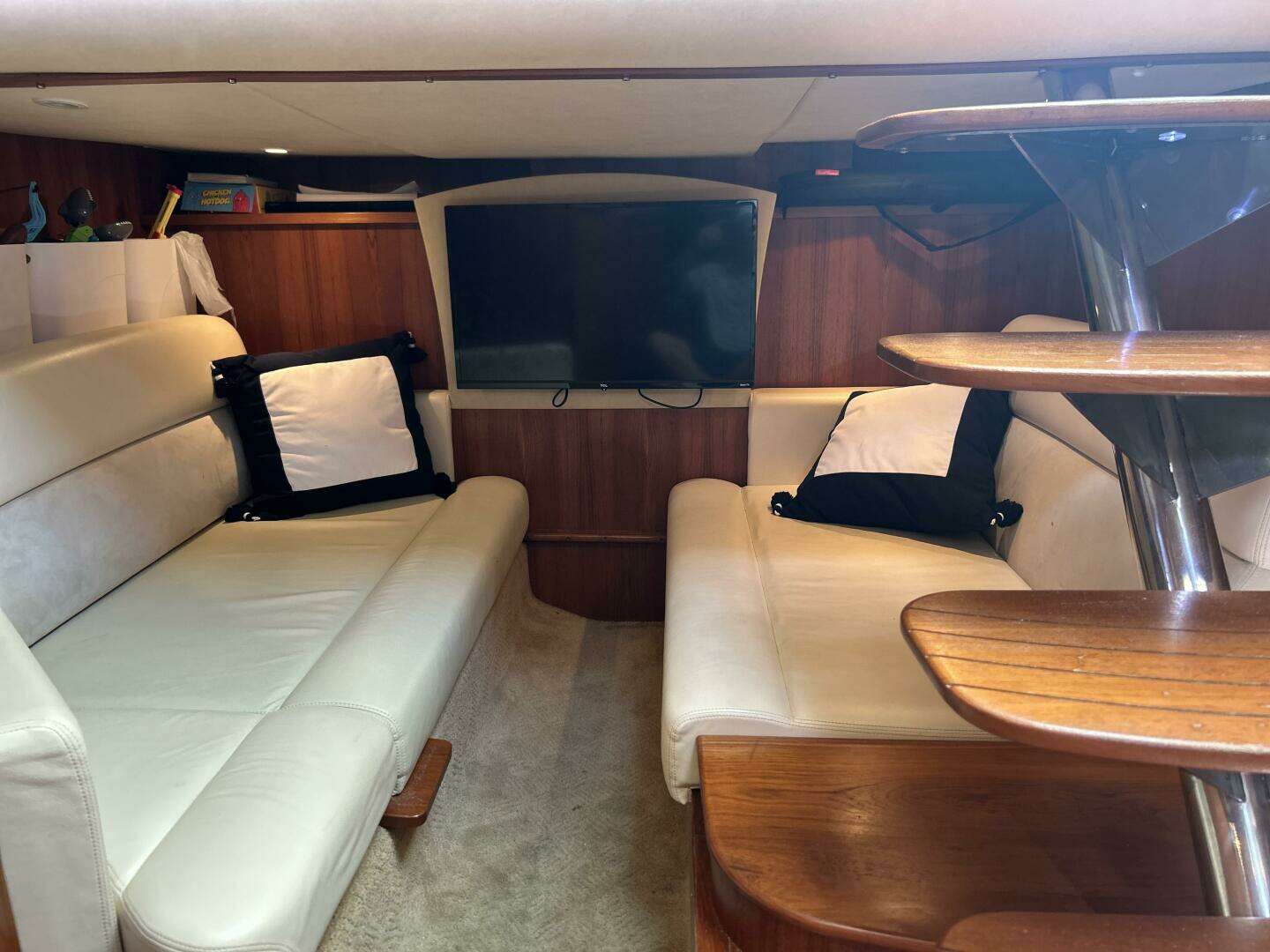 The Swallow is a well-maintained Tiara Sovran 3500. She is powered by twin Volvo IPS 400 Pods with joystick control. Her ride is smooth and dry. The raised cockpit provides excellent visibility all around the vessel. The nearly 13' beam provides an extremely spacious cabin for a 35 footer.
