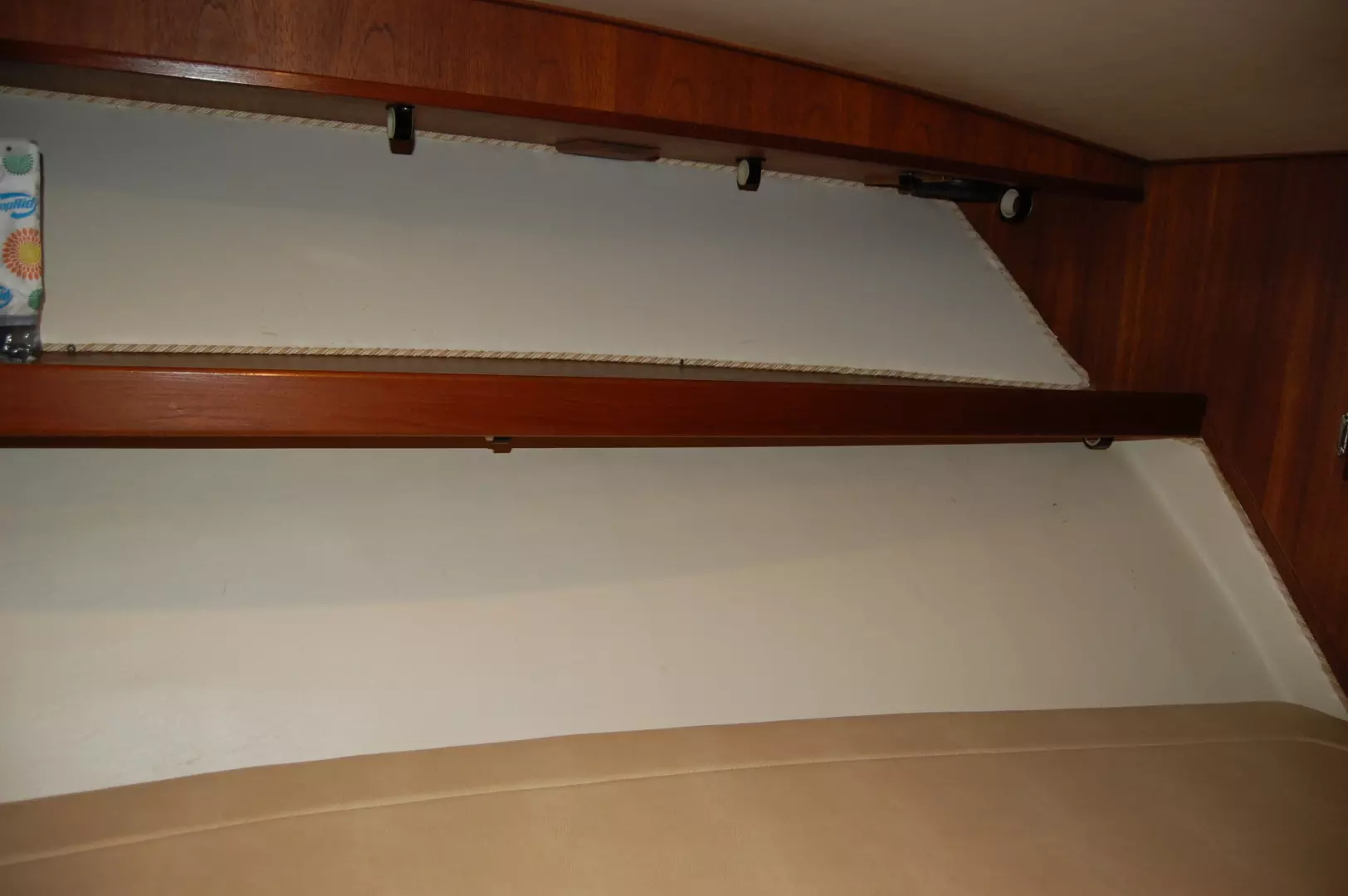 Headroom throughout the lower cabin is generous, headliners and side wall liners are bright and clean, teak and holly sole brings a Deep, Rich look and feel.