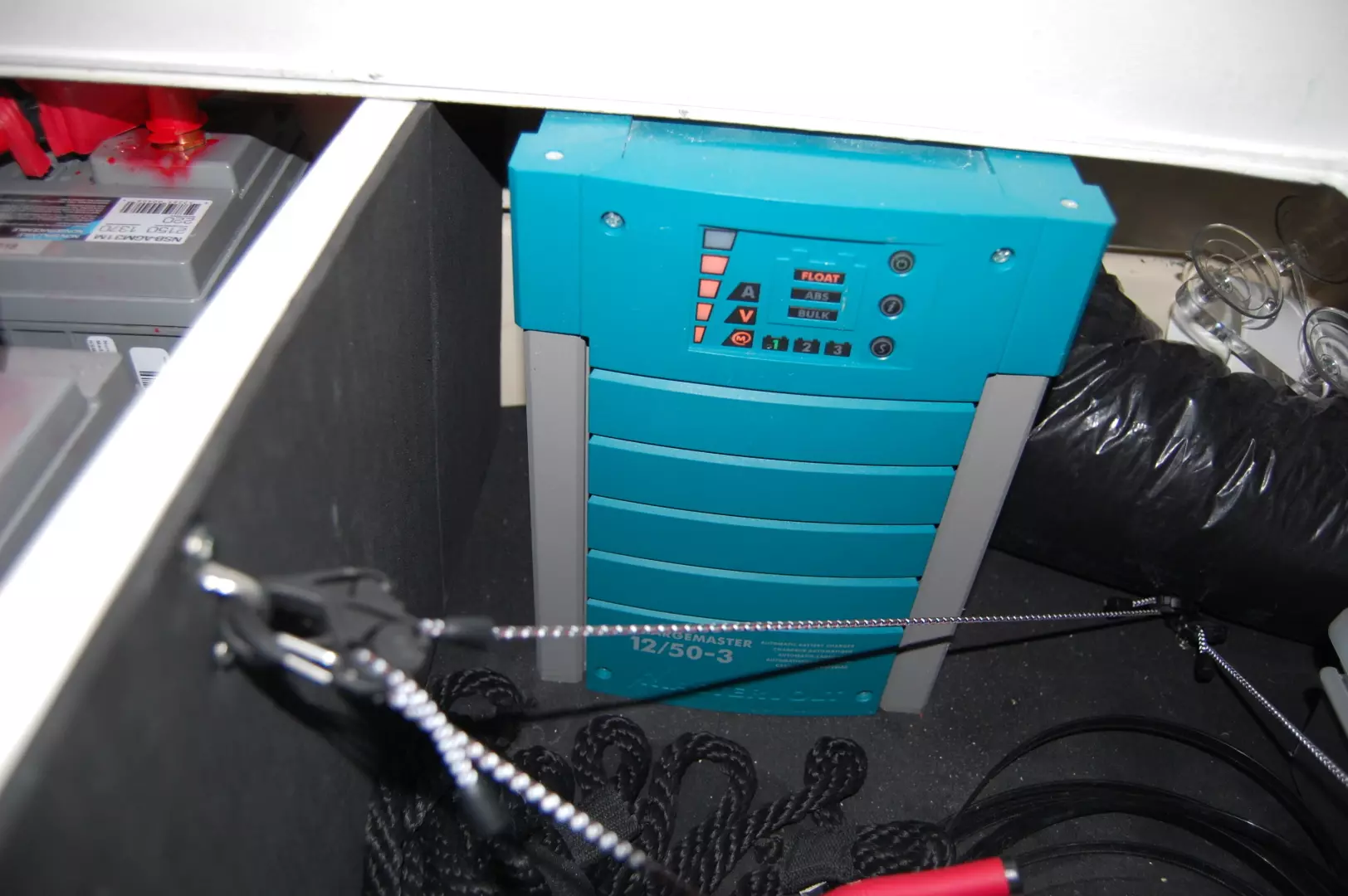 - Mastervolt 50 amp 3 bank battery charger, new 2017. with Mastervolt remote monitoring panel in lower cabin
