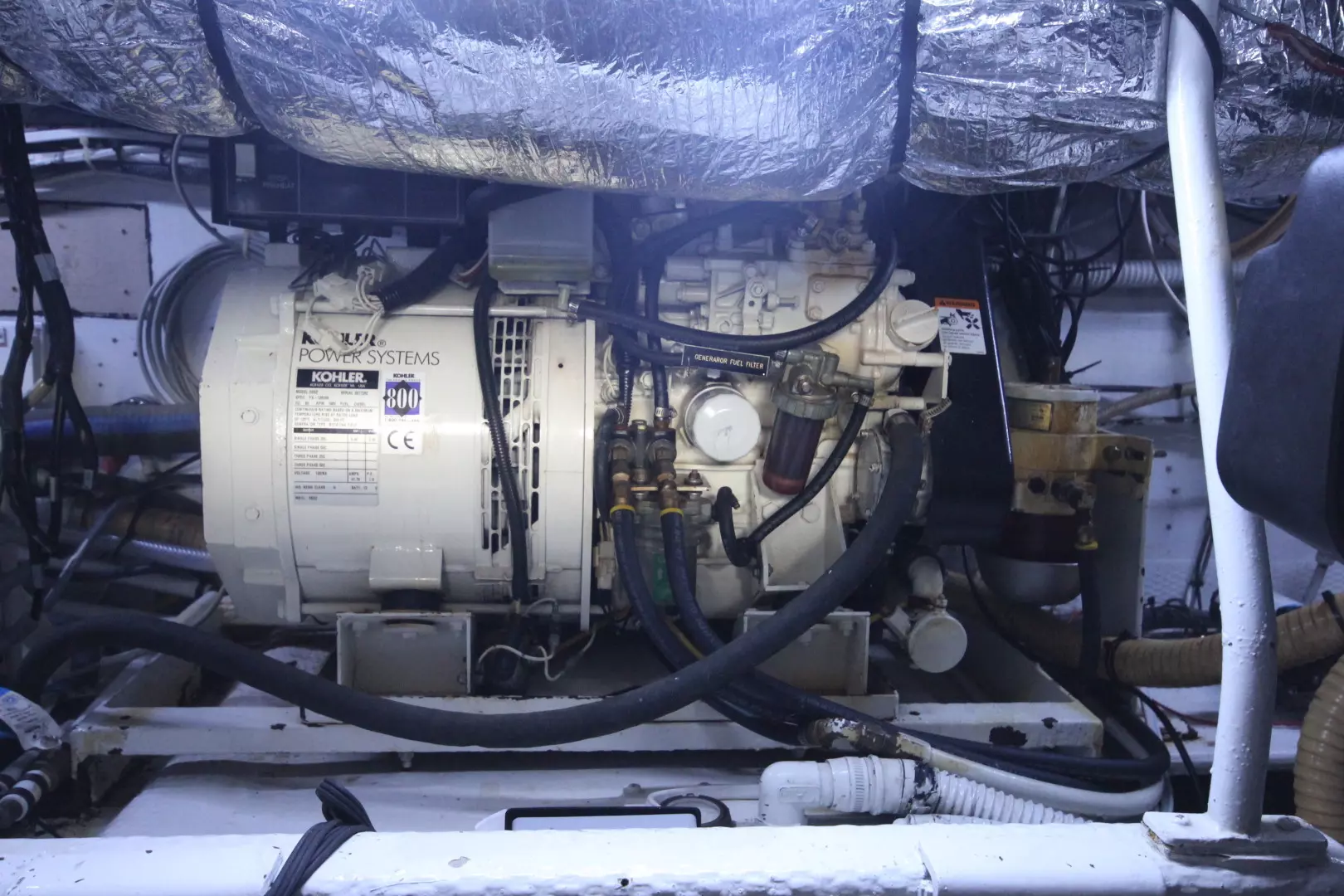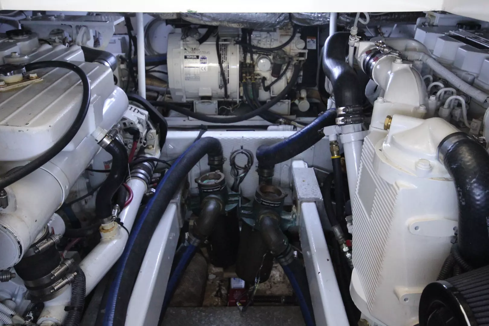 Re-Fit & Re-Powered in 2006, Kept in a Covered Slip. Updated again '16-'19. Twin Cummins Common Rail, Electronic controls, QSB5.9 liter, 380 hp each with 1100 hrs, (1 nmpg at 24 kt cruise) ZF transmissions, 2006 Kohler 5 kW diesel generator, drip-less shaft seals, custom hardtop with moulded in spre