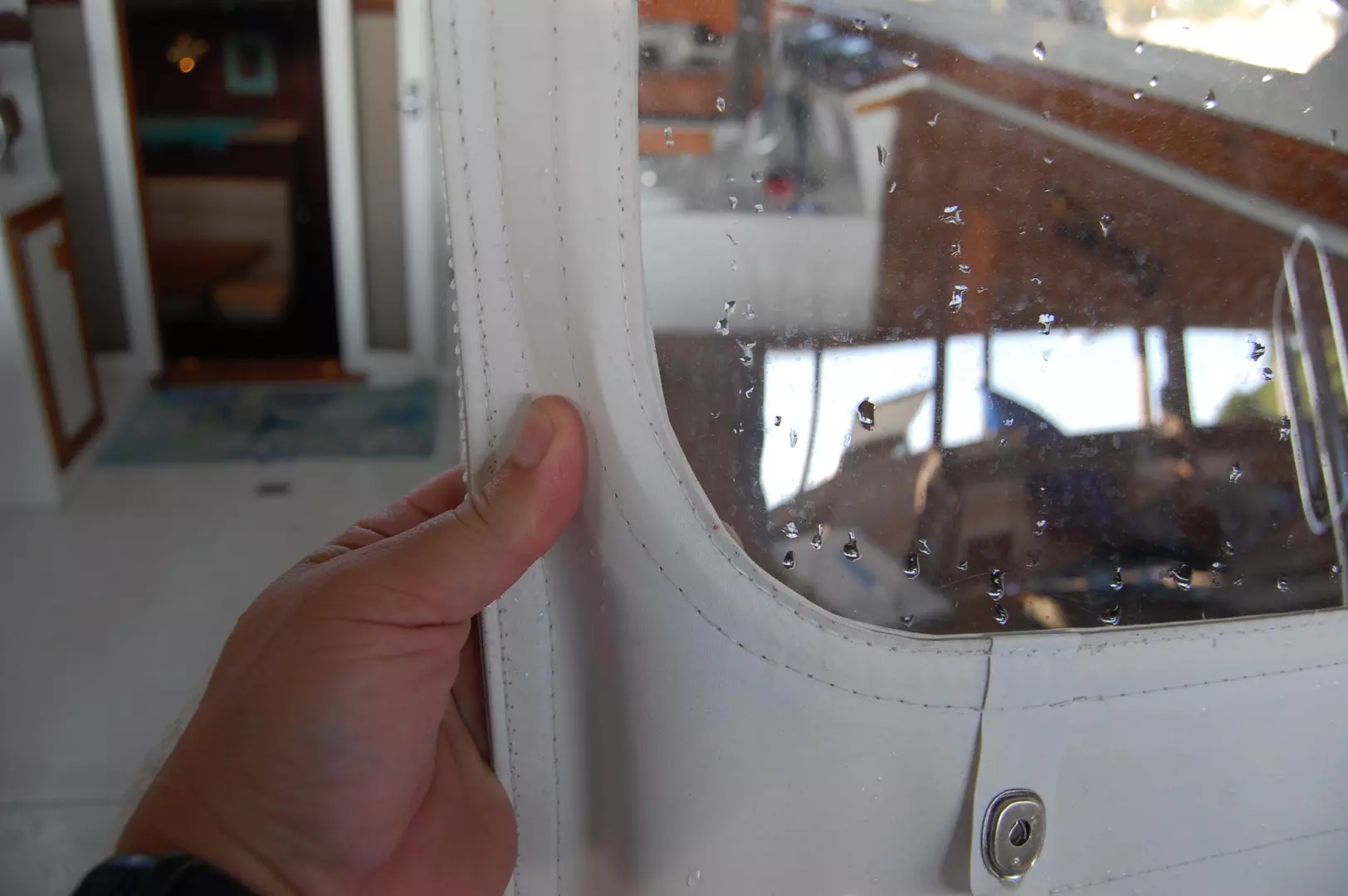 foam toppers, new Distressed Brisa fabric. Overhead deck hatch with