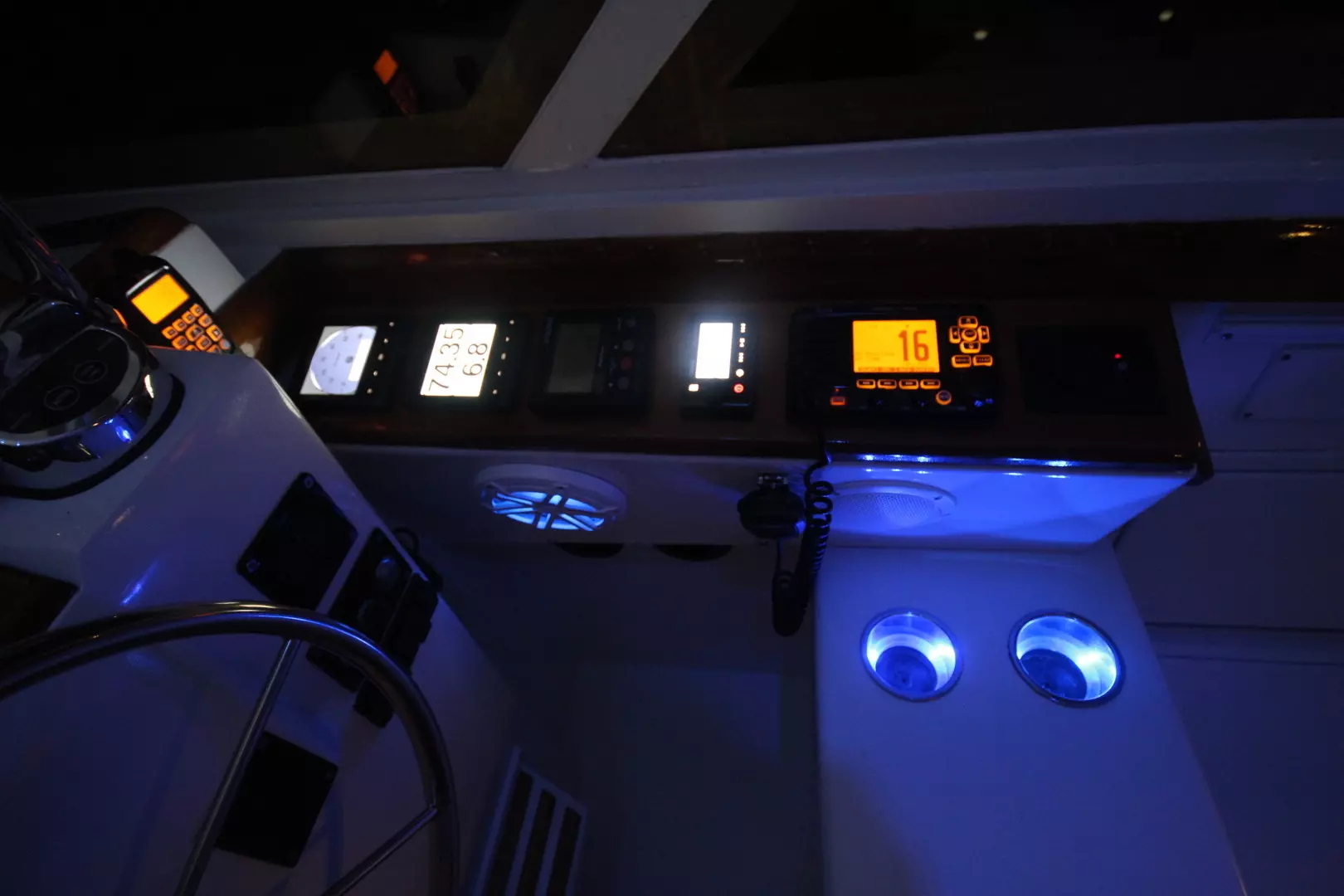 cockpit speakers. Fusion remote at the helm, and the Fusion stereo is