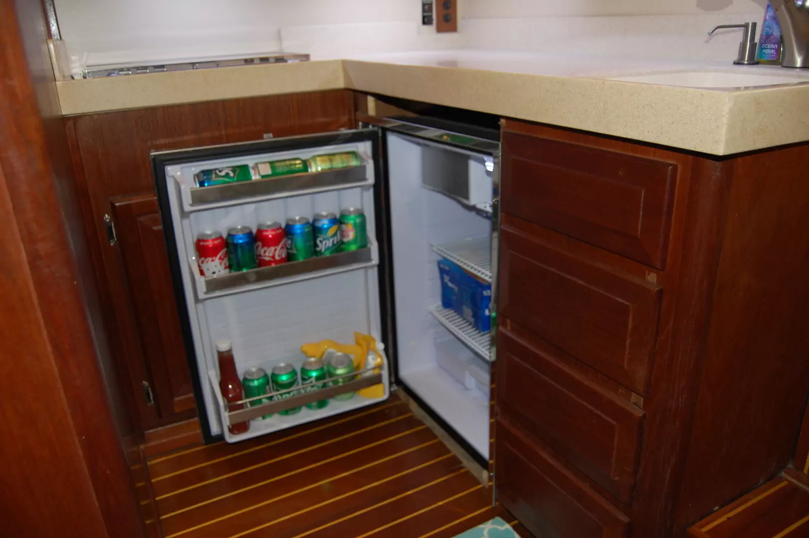 the stbd side of the cabin, featuring Corian Counters, a Stainless