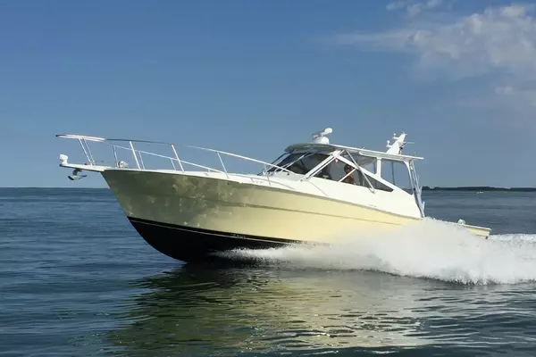 Re-Fit & Re-Powered in 2006, Kept in a Covered Slip. Updated again '16-'19. Twin Cummins Common Rail, Electronic controls, QSB5.9 liter, 380 hp each with 1100 hrs, (1 nmpg at 24 kt cruise) ZF transmissions, 2006 Kohler 5 kW diesel generator, drip-less shaft seals, custom hardtop with moulded in spreader lights and custom Radar mast, 4 sided helm enclosure, anchor pulpit and windlass, 50 amp Shorepower system, one zone of Heat and AC for the cabin AND another zone for the Helm Deck (new 2016). All new helm and cabin upholstery (closed cell foam and Distressed Brisa fabric) in 2017, Custom Teak Help pod and Garmin Electronics 2018, LED Light package (underwater, courtesy, cabin lights etc), custom swim platform 2016 .Clean cabin, with private V-Berth, convertible dinette table, quality galley with Corian Counters, Flat panel TV/VCR combo and Bluetooth stereo new with Amp and speakers, new 4 sided polycarbonate helm enclosure. Very Nice boat! Great opportunity! Possible trade for top-shelf center console.