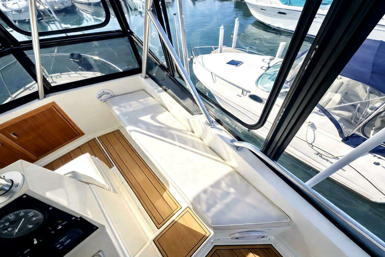 - Removed fly bridge hard top & all flybridge structure