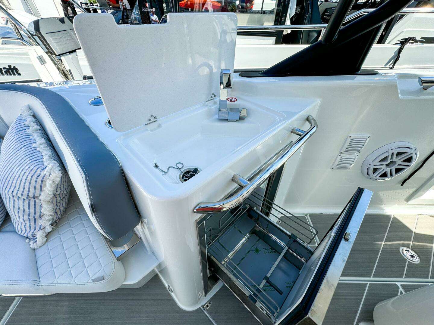 - Stainless steel drawer fridge in aft cockpit, 20L