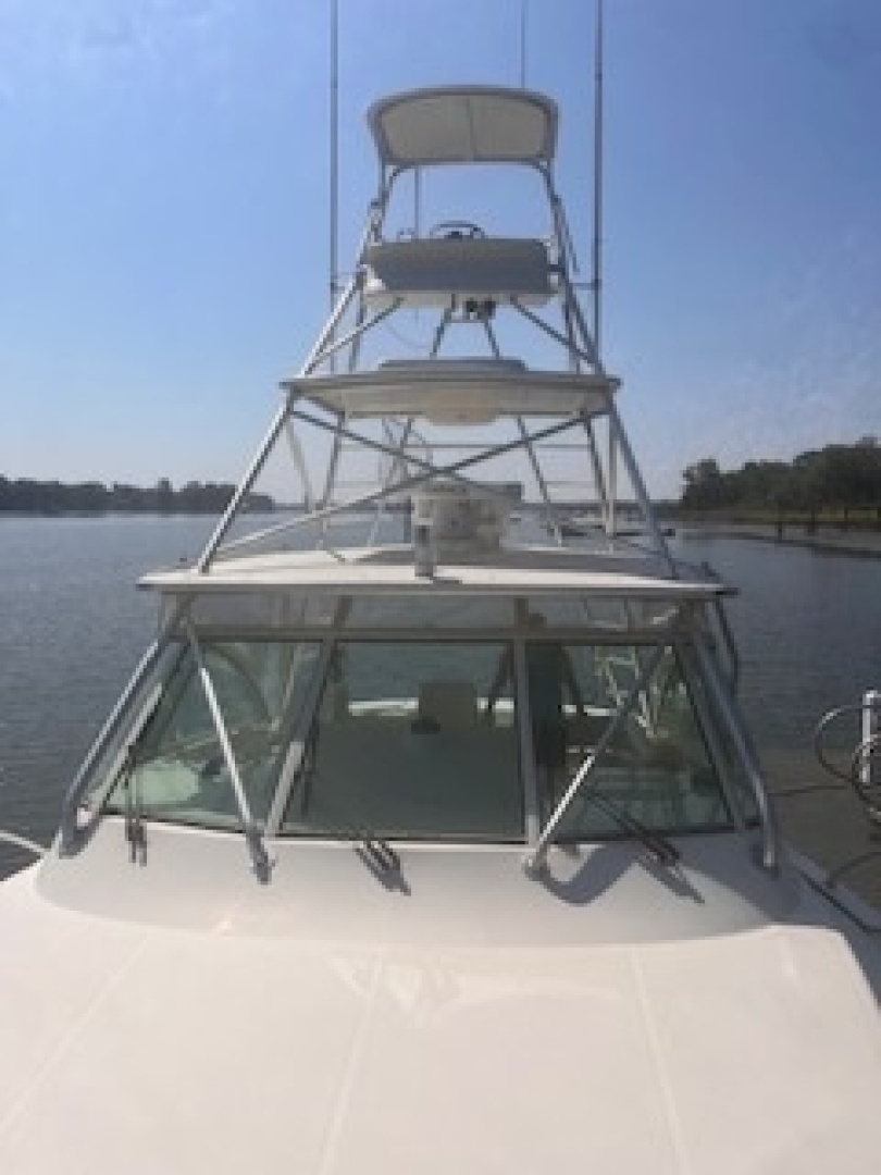 Powered by twin 575 hp Caterpillar C9 inboards (1,360 hrs) with an Onan generator, BLUE PURSUIT is built for dependable offshore runs. The helm and tower feature a full suite of new (2025) Garmin electronics, including GMR Fantom 54 Radar, and GPSMAP 8616 XSV MFDs with Navionic Chartplotters. Also includes an ICOM VHF, and a Fusion Apollo system with a high performance B275LHW transducer CHIRP system, dialed in for serious fishing.