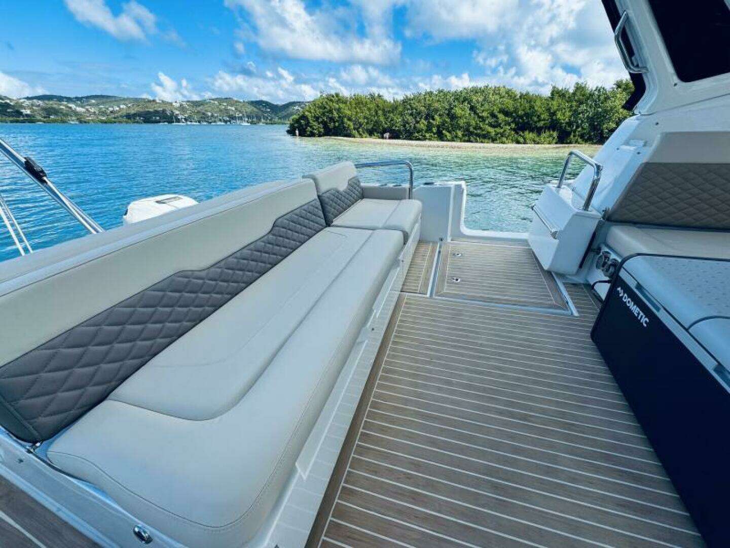 Powered by twin Mercury Verado 350s, she offers quick acceleration, confident handling, and a smooth, stable ride—perfect for hopping between anchorages or exploring farther afield. From quiet coves to lively waterfronts, she makes every trip easy and enjoyable.