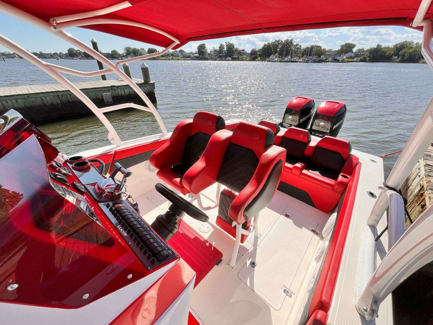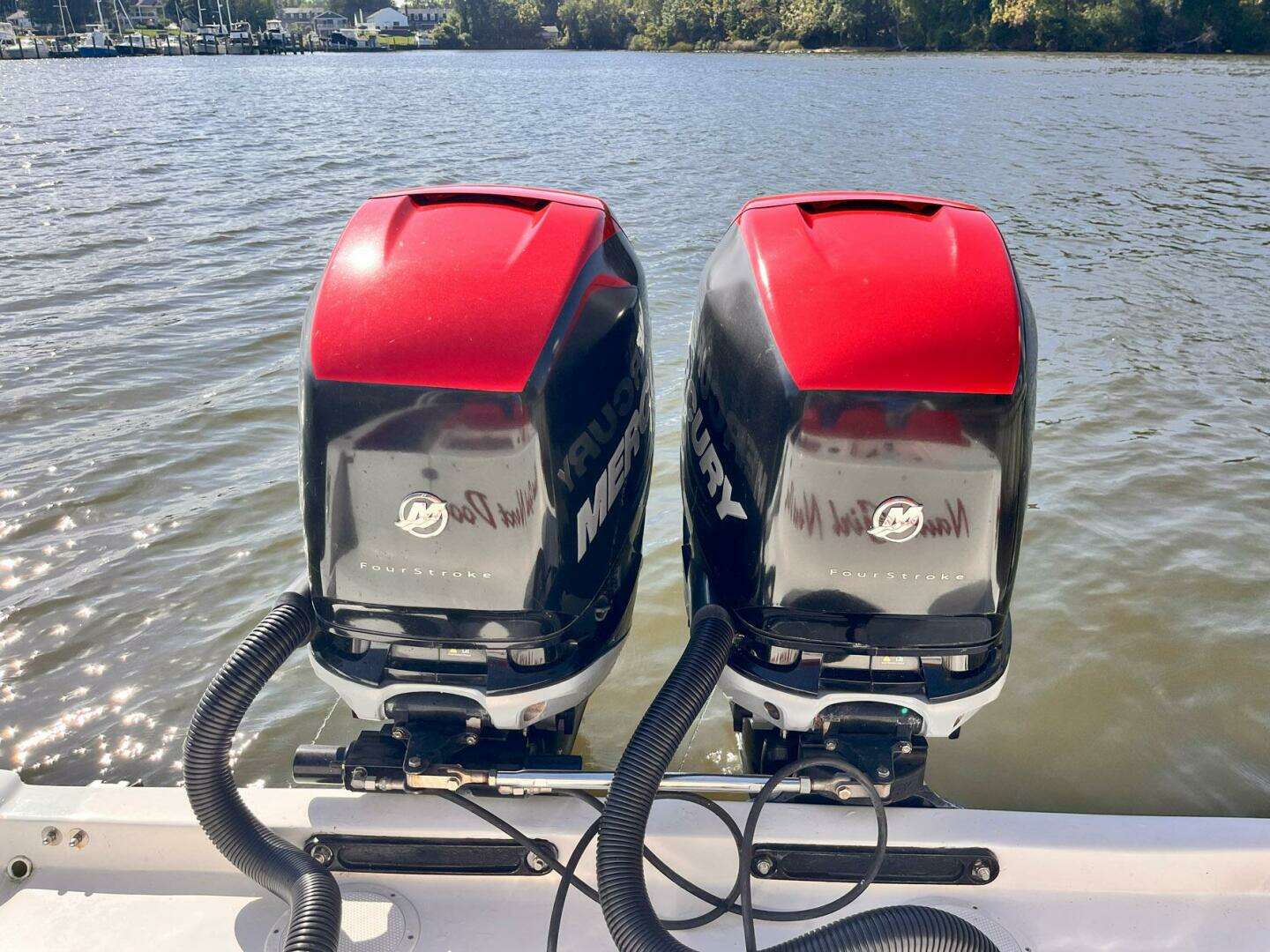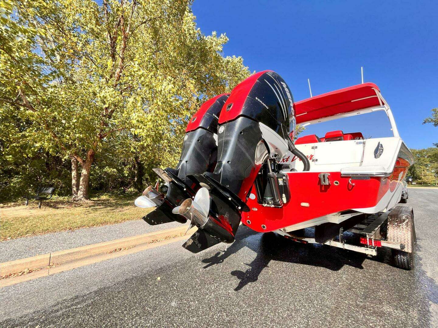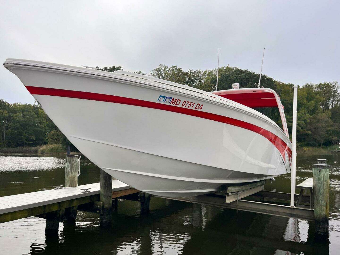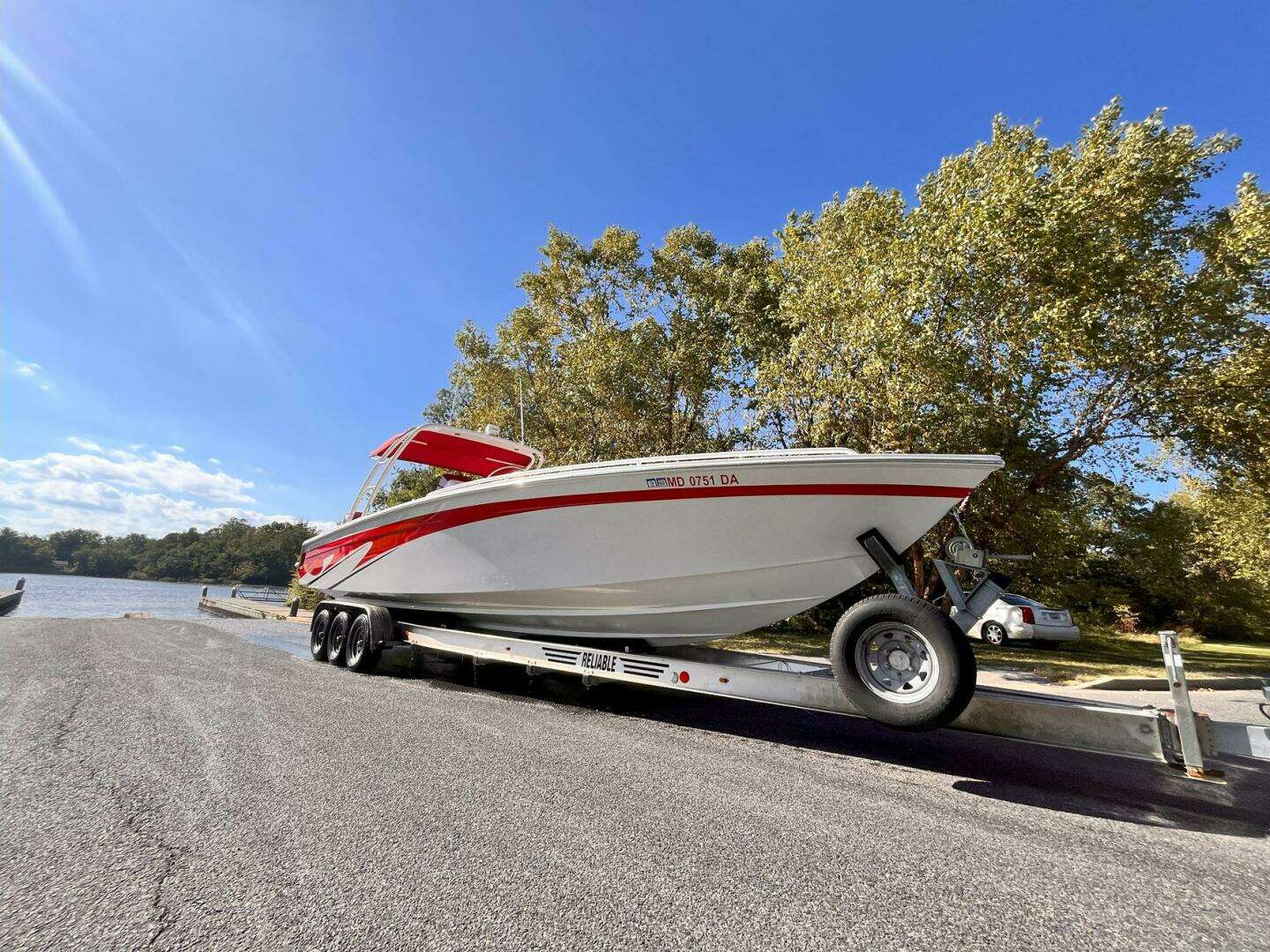 Avanti 36 CAT 5 has been enjoyed and cared for on the upper Chesapeake Bay (not Salty!) by her current owner since 2016 and includes a Tri-Axle Trailer that fits her well. Lift kept and definitely shows pride of ownership, upholstery and fiberglass are in GREAT condition! Powered by twin Mercury Verado 300's - will cruise about 40 mph and top out over 50 mph - only 500 hours with maintenance records available. Cabin interior is also in great condition and provides good space for overnight stay, porta Potti, nap space for little guests and plenty additional storage space! Includes full cover and upgraded sound system, Garmin GPS, drop down bolster seats, lots of storage under seats and console, walk through transom access to cockpit, dive ladder too! Fabulous all-around Center Console for entertaining, raft ups, fishing features, lots of seating and cup holders too!! Don't miss this beauty!