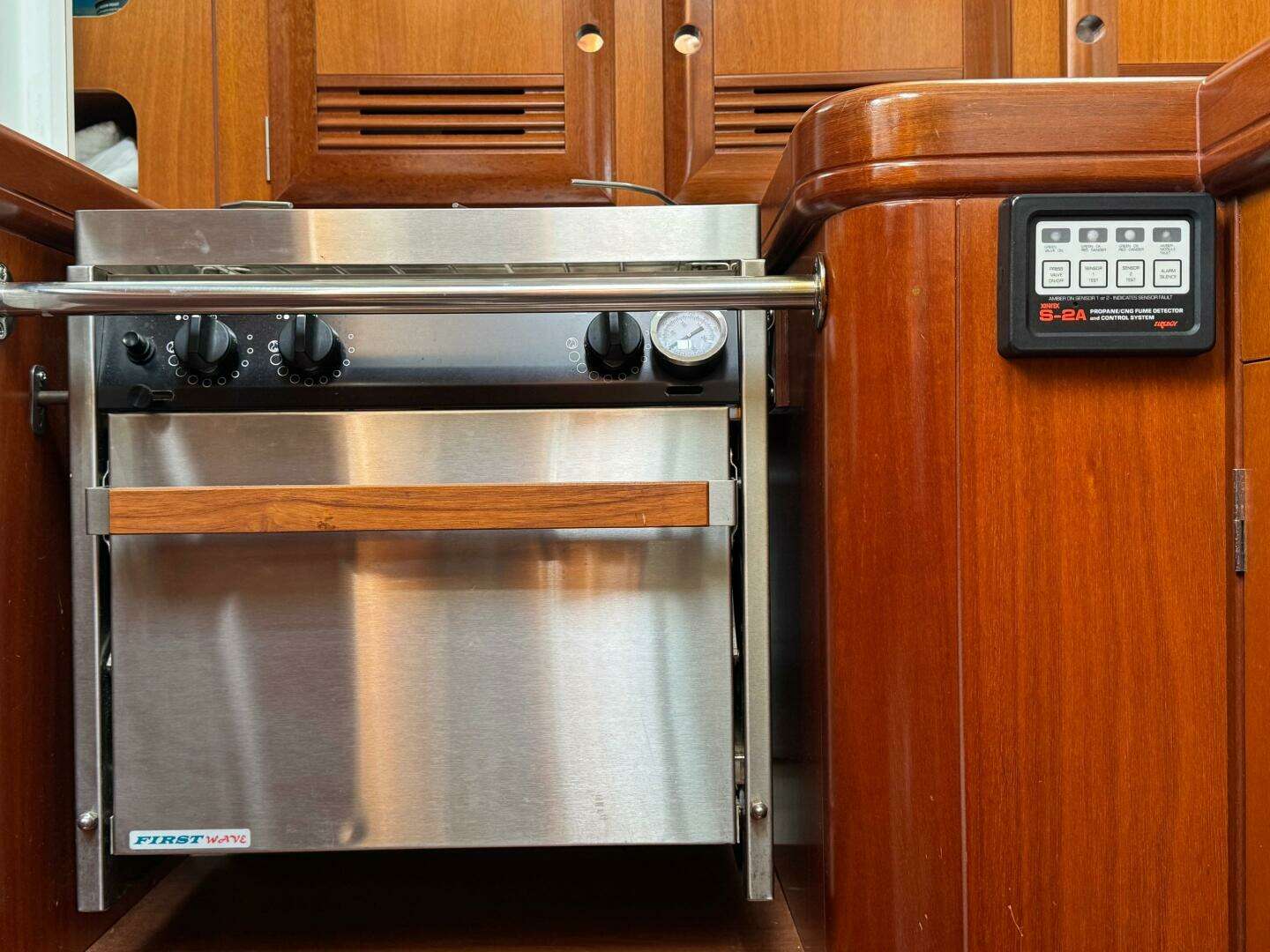 - Well-appointed galley with stove/oven, refrigerator, top loading freezer, deep sink, microwave and abundant storage