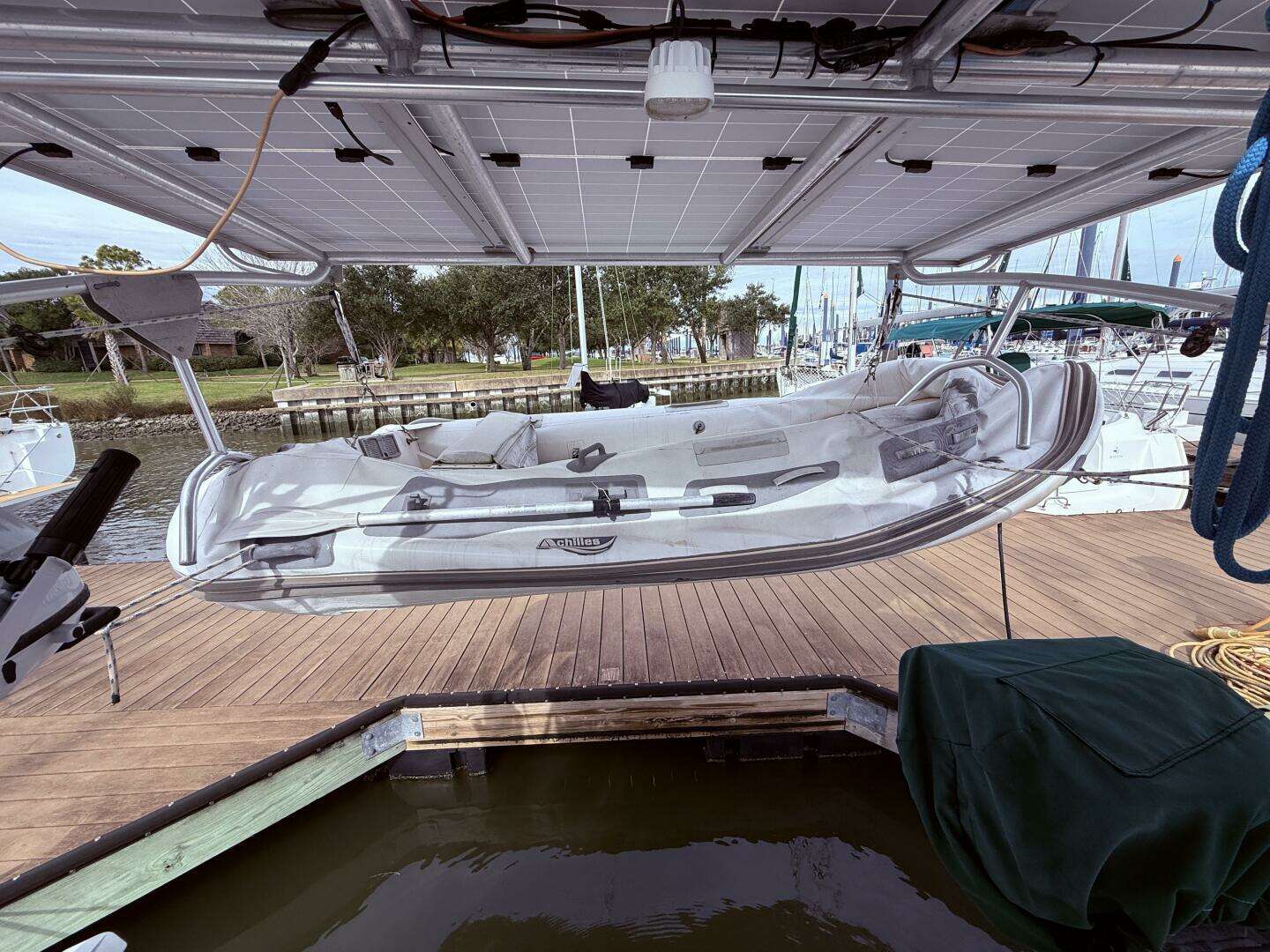 - Solar arch with integrated dinghy davits