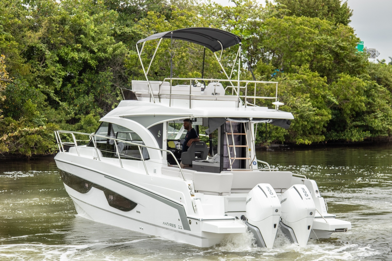 The Beneteau America Antares 11 is just over 36' in length, is loaded with interior and exterior features, and has a maximum rating of twin 300 HP outboards.