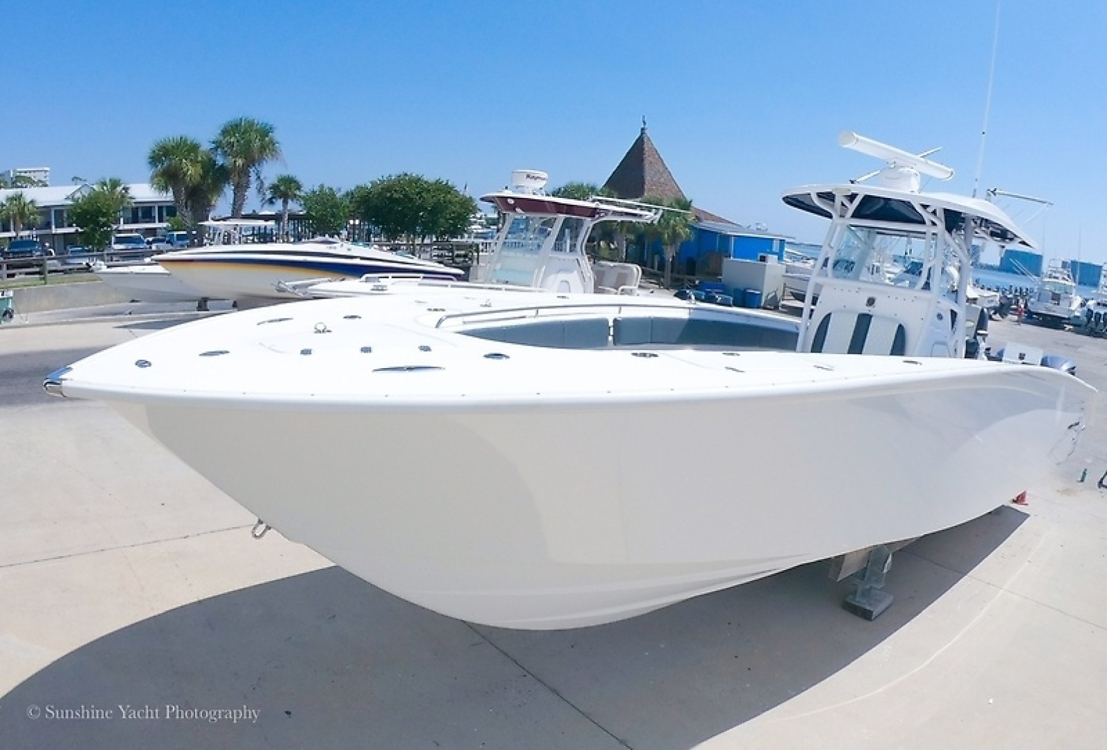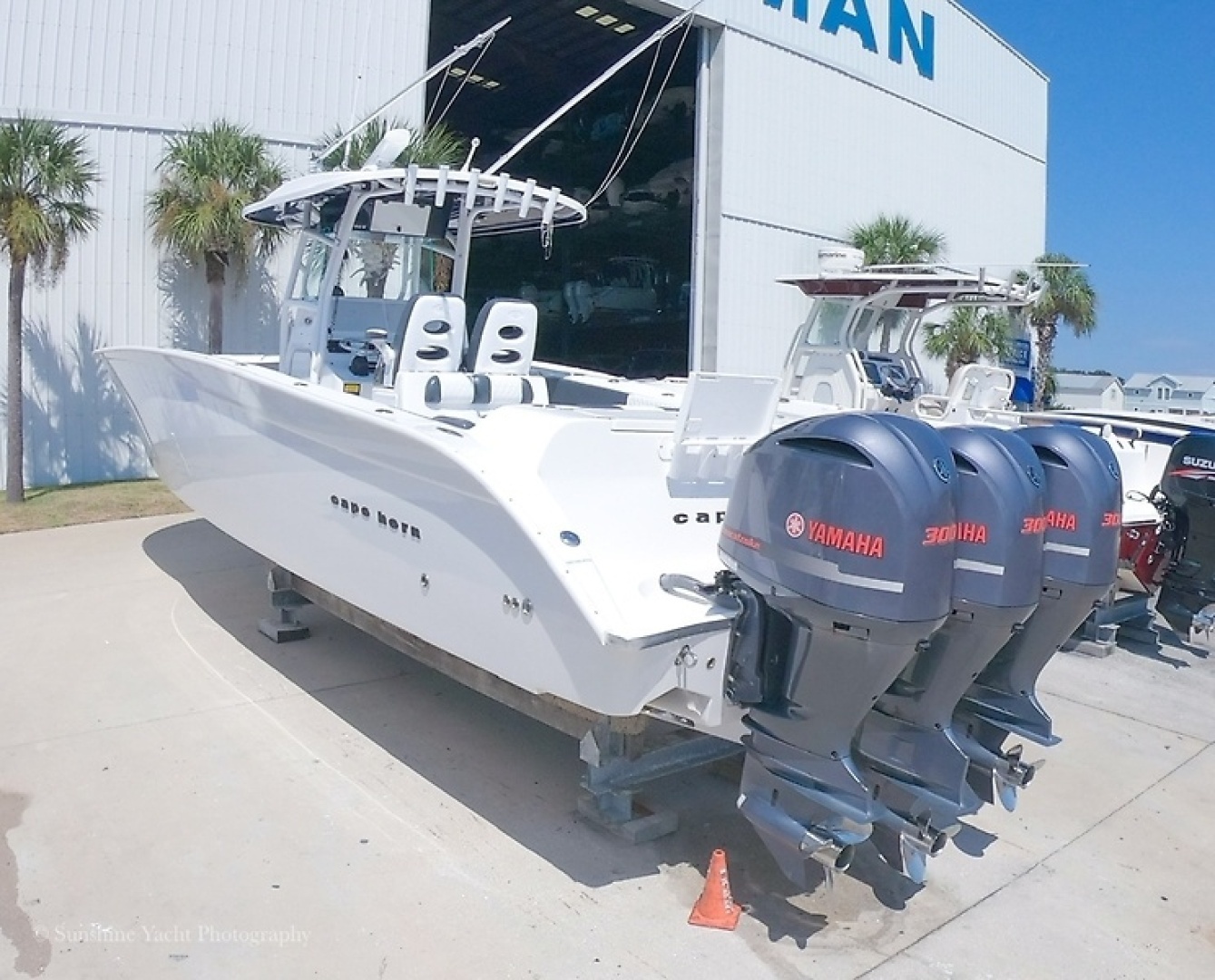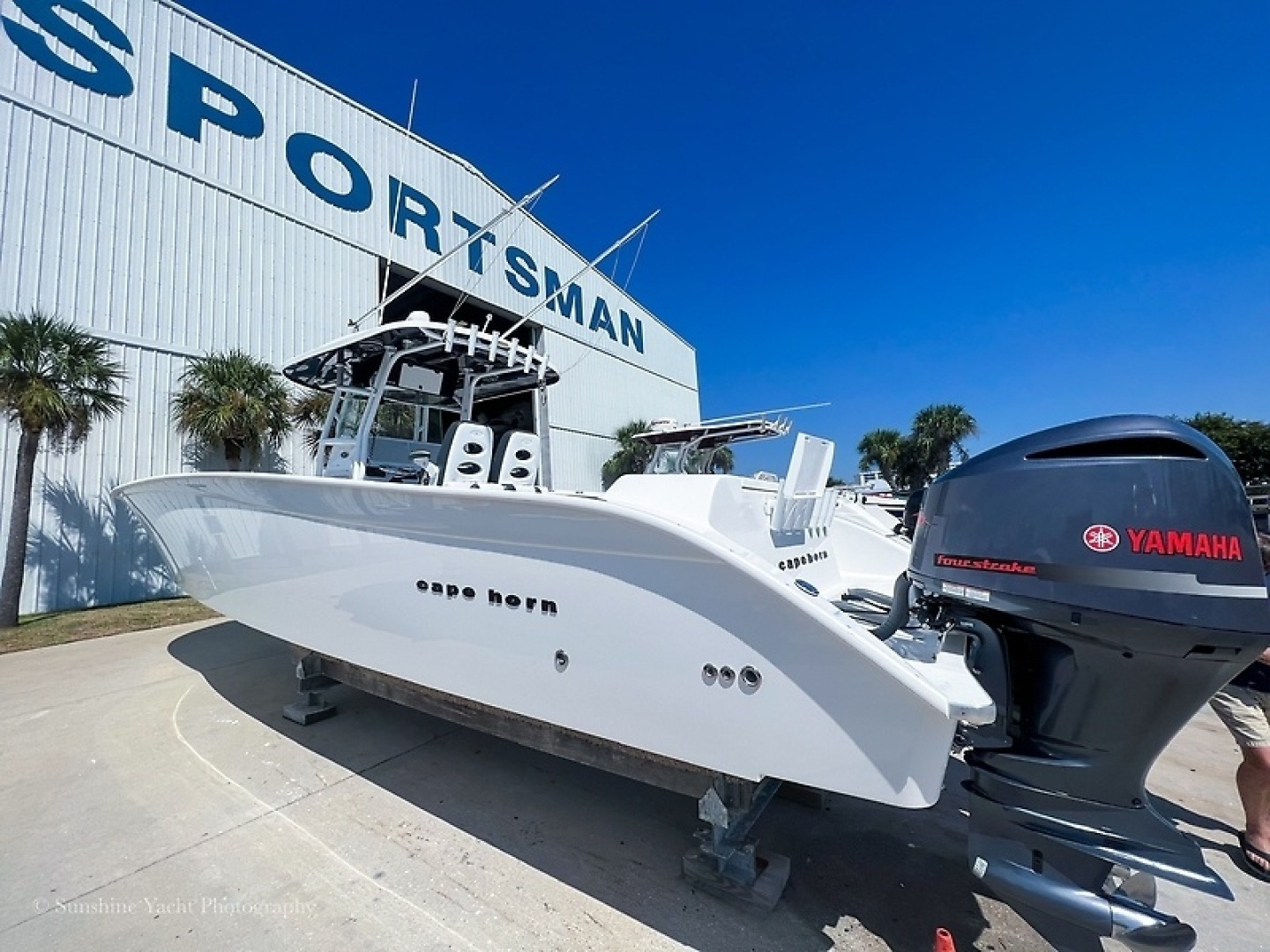 The 36 Cape Horn XS has a proven Big-water ride. Loaded for fishing and entertaining