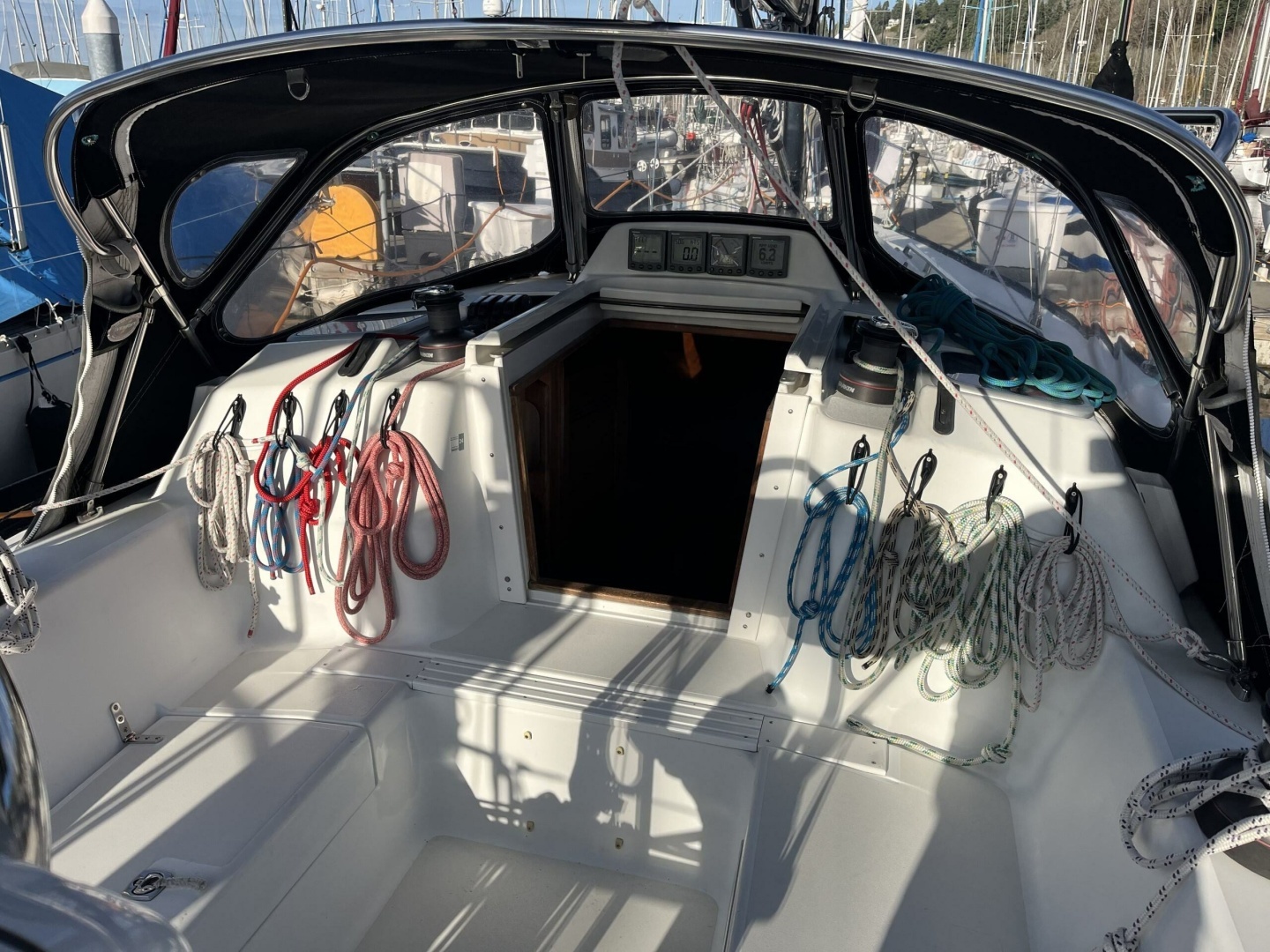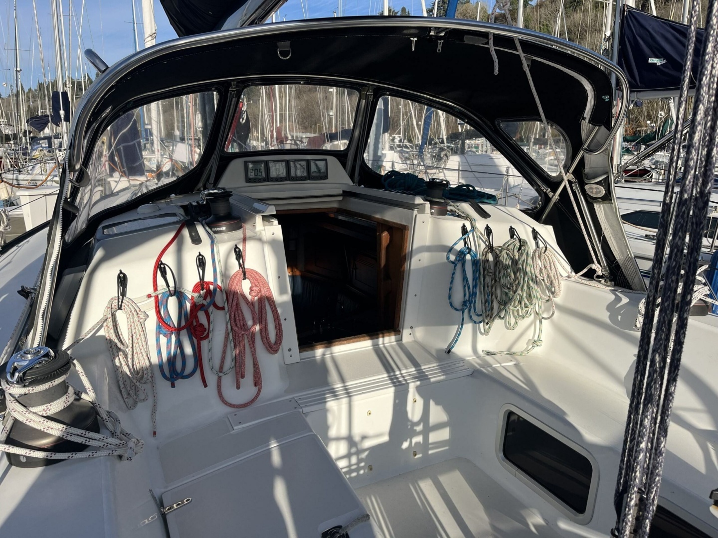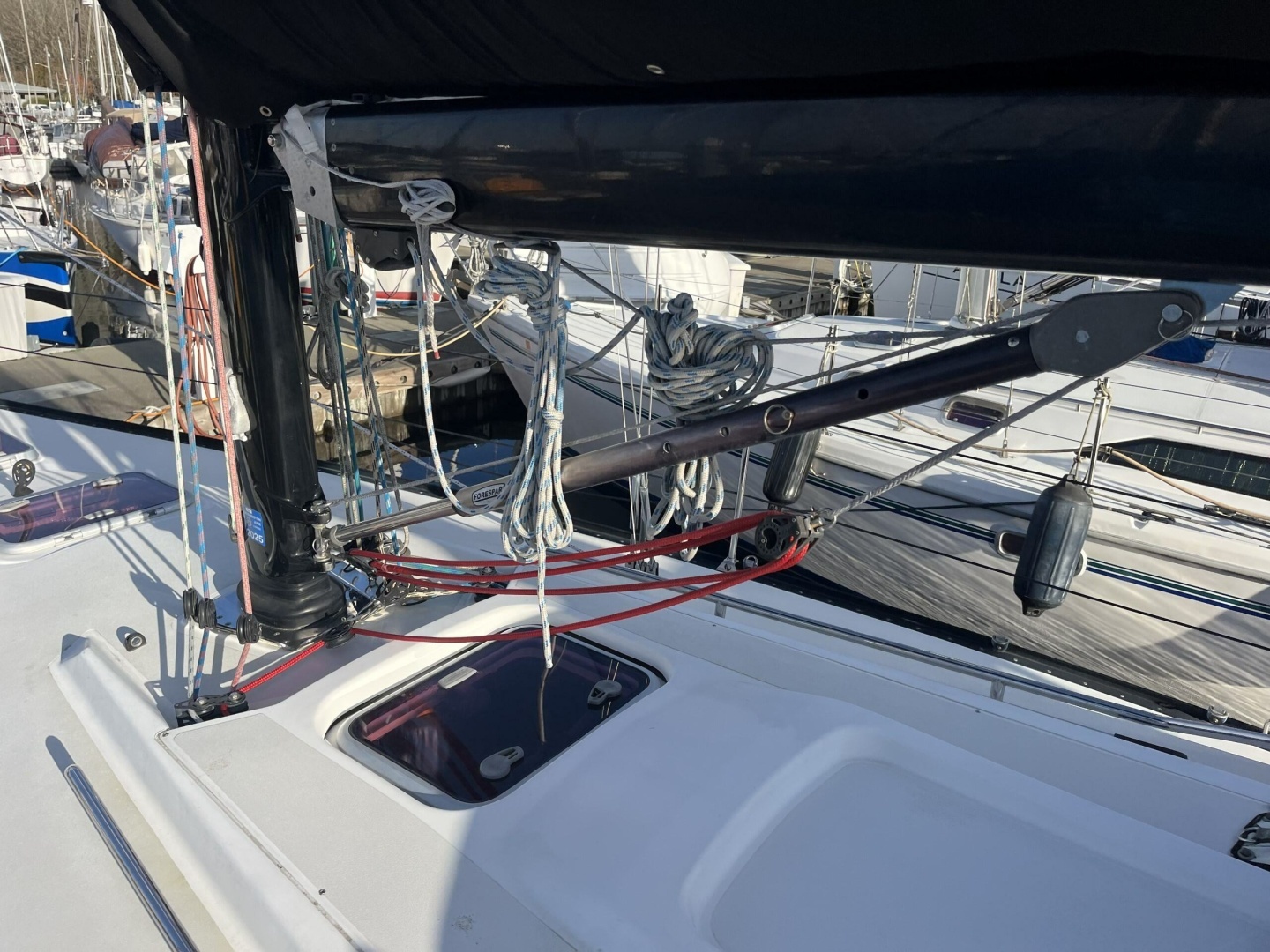 Well-appointed with Harken rigging components, deck gear, blocks, etc.