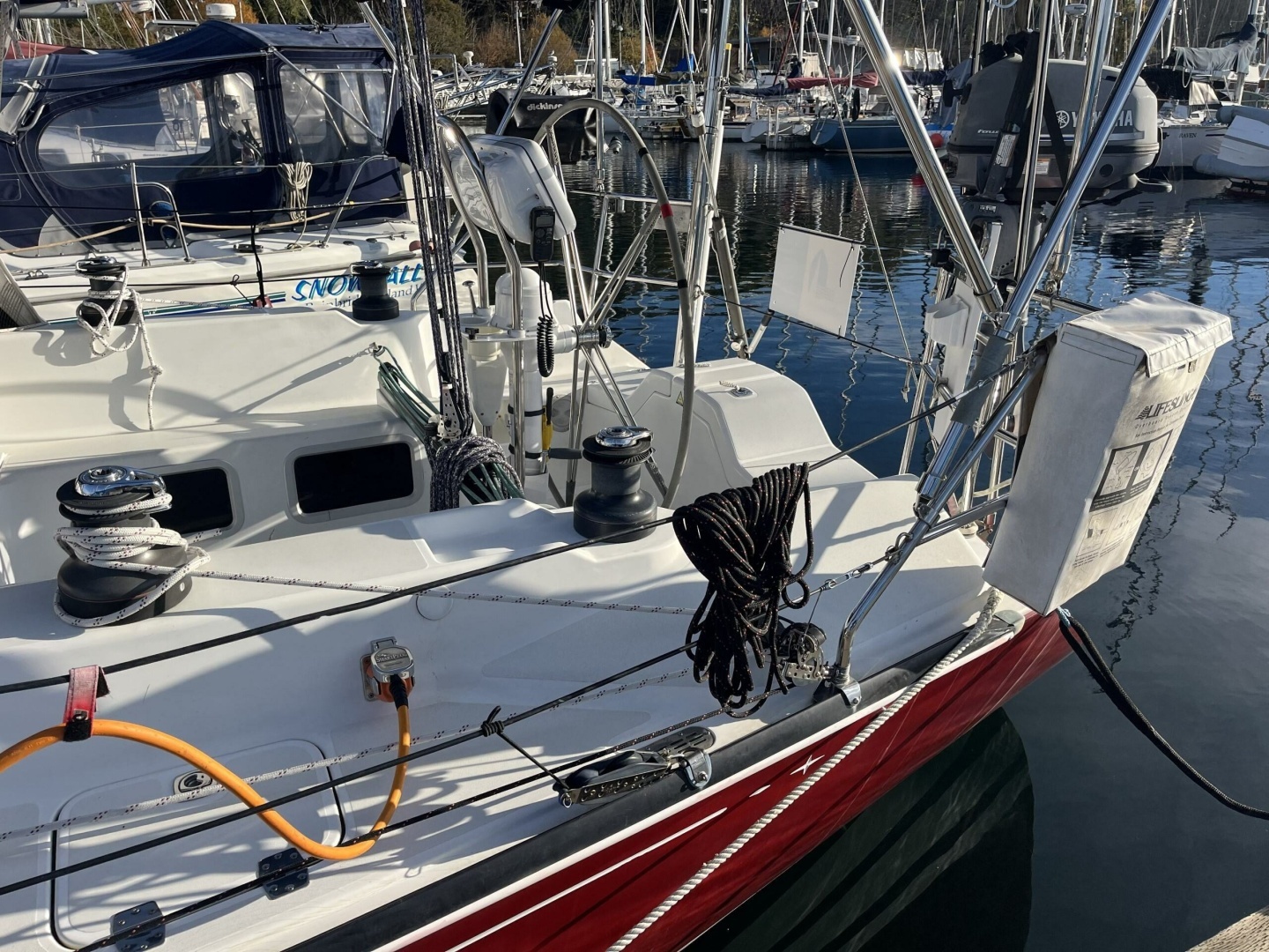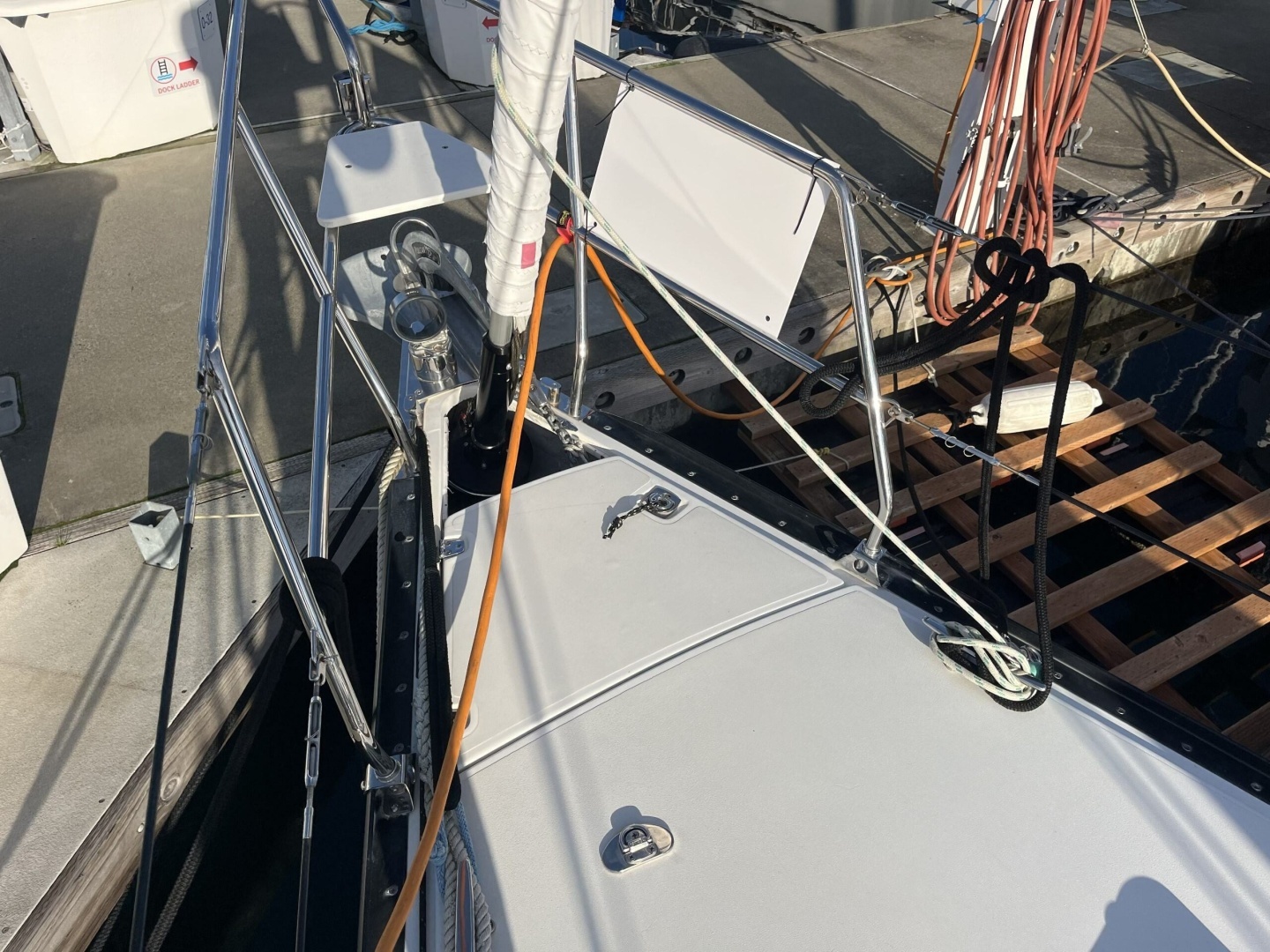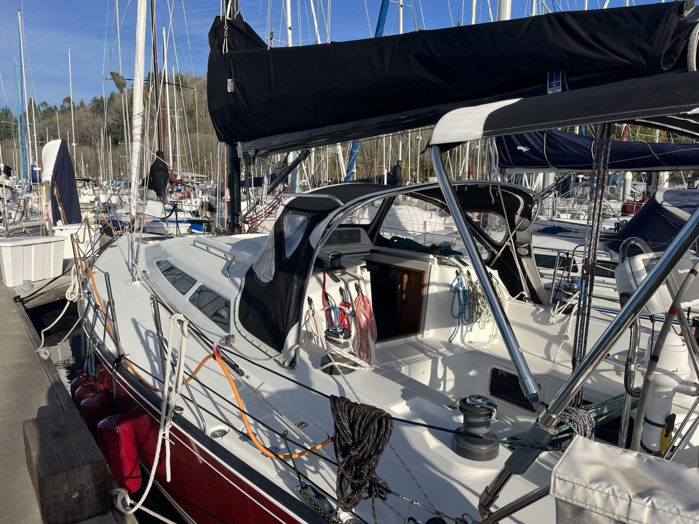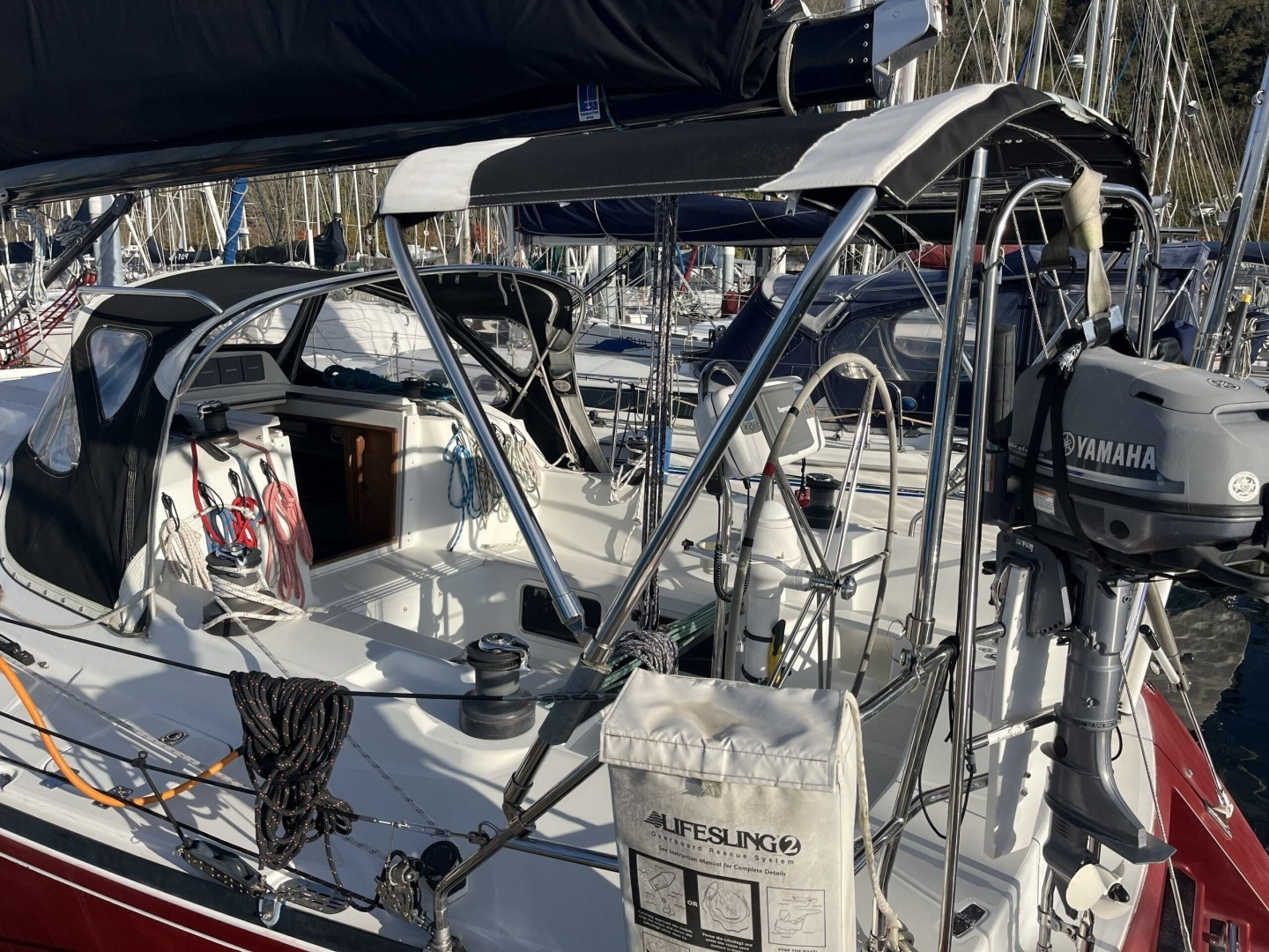 Well-appointed with Harken rigging components, deck gear, blocks, etc.