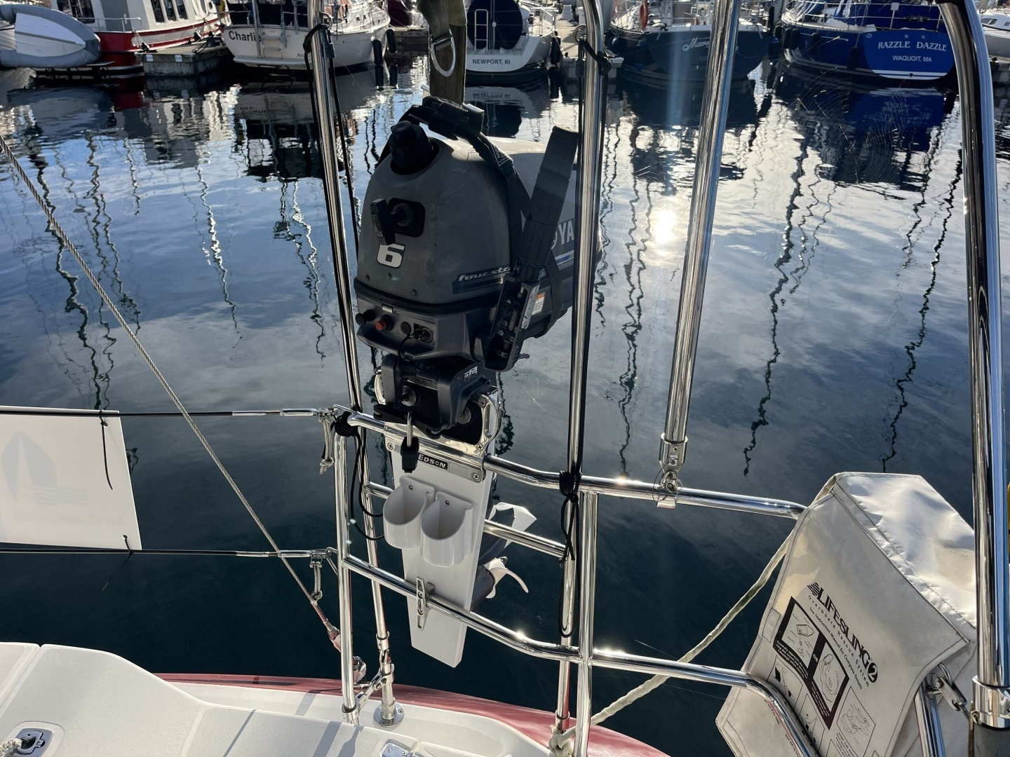 Custom stern-tie reel, mounts on radar post. 450ft of ½" float line.