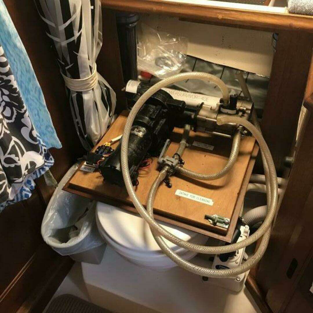 Katadyn 40E watermaker, 1.5 gal/hr, twin filters, using the seawater pump from the