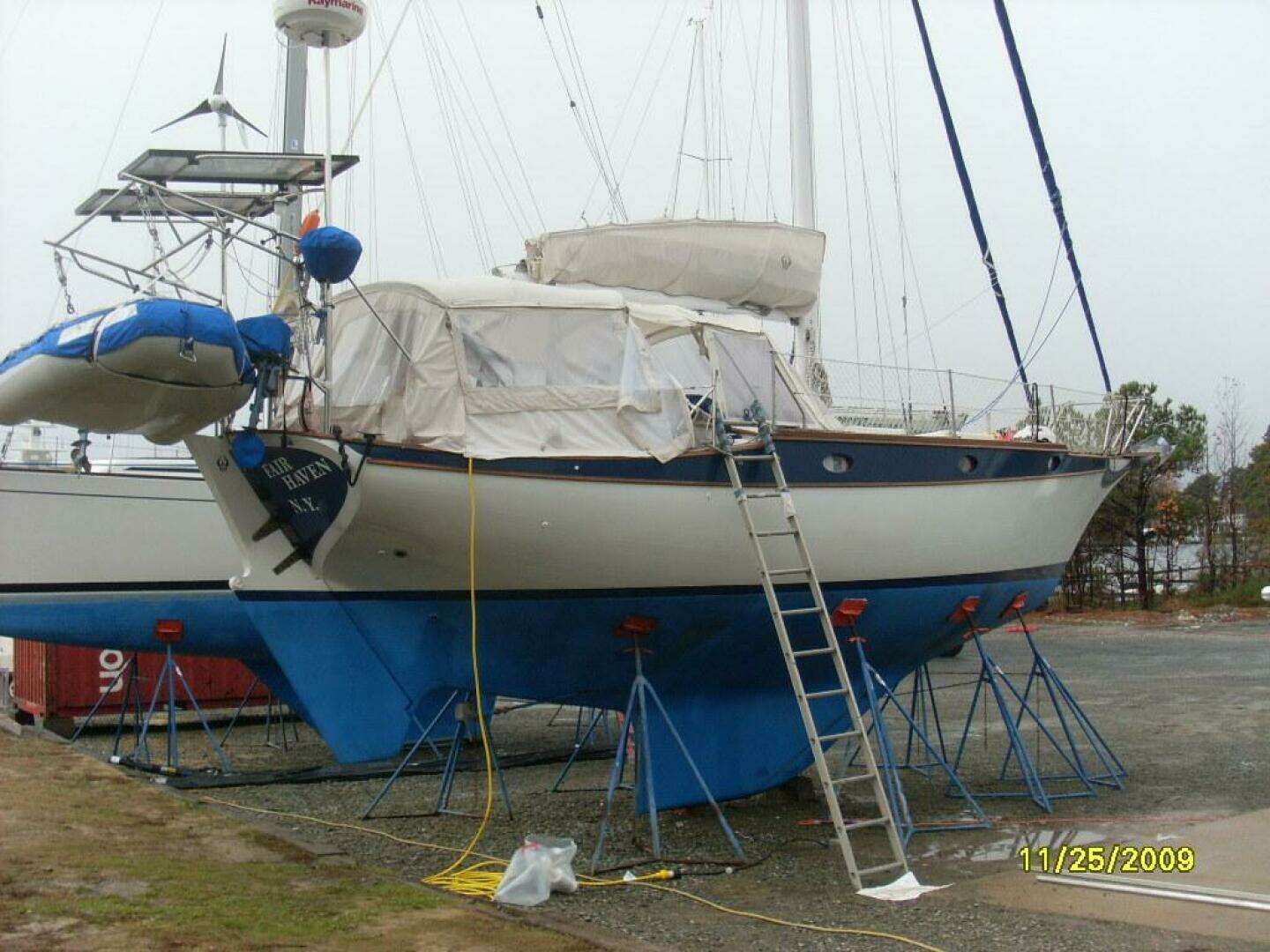 All new standing rigging, day tank, galley and head modifications, cockpit bonuses, Engine maintenance, the bright work, and of course the bottom work. The deck is solid and sound with no soft spots as many older boats have because I have gone after all deck fittings. We have a routine for our maintenance on her to keep her dry and pretty. Her 3 cylinder Westerbeke has total access and is very easy to work on. Be sure to check out our blog (there is a link just past the photo section on the listing). While we haven’t updated it for years, it’s a great opportunity to see many of the projects we have completed for her.