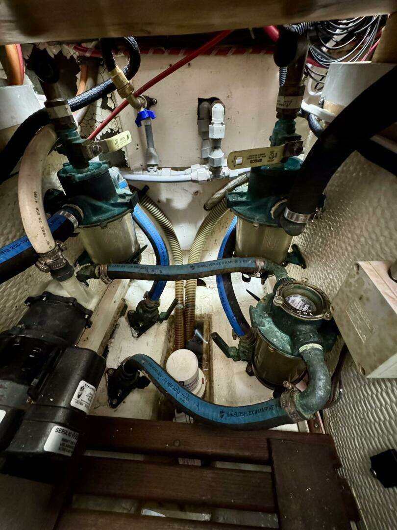 - Forward raw water wash down system with Groco thru-hull/strainer combo (2024)