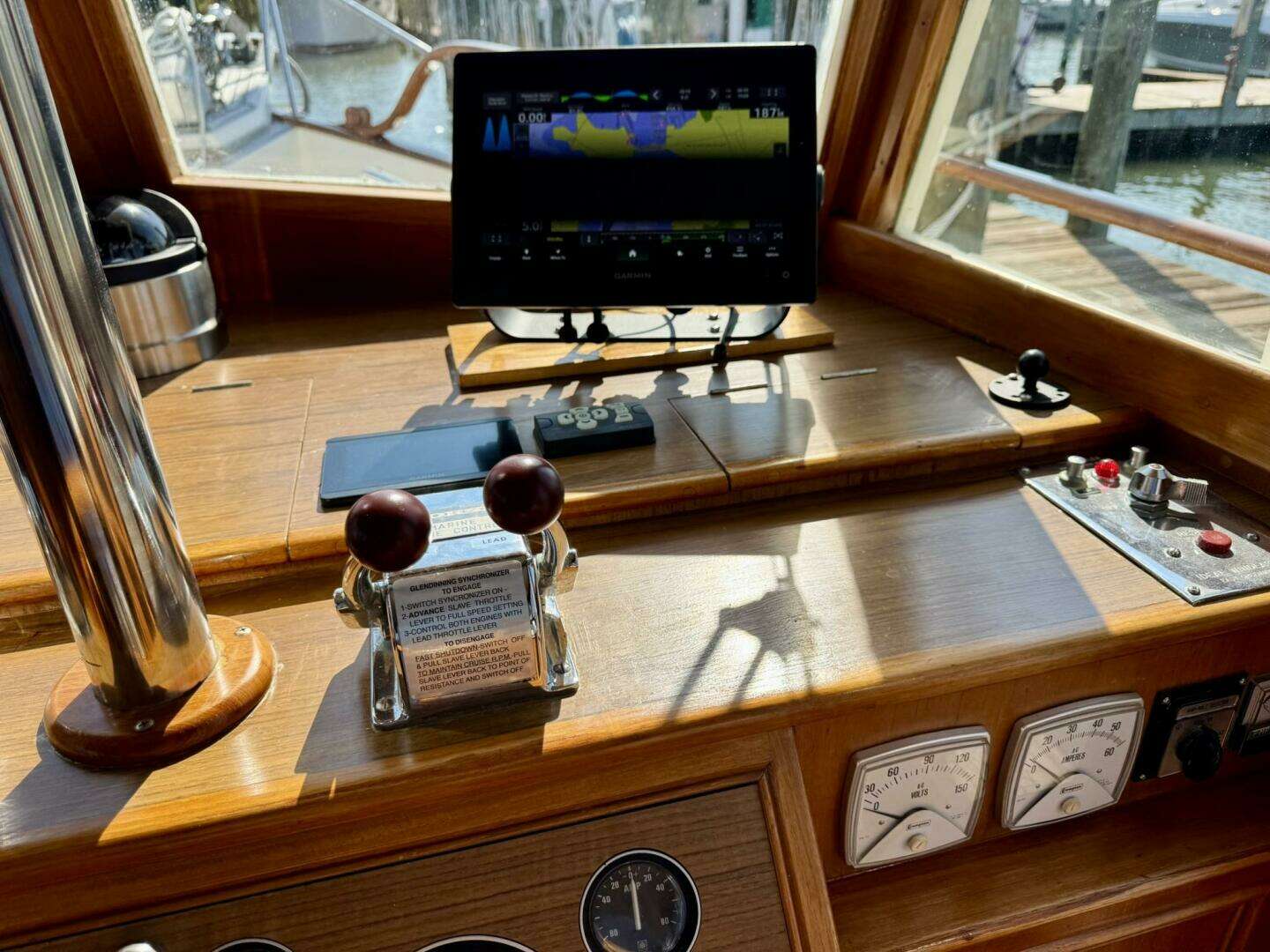 The helm is located on starboard side and has seen numerous upgrades in 2022: