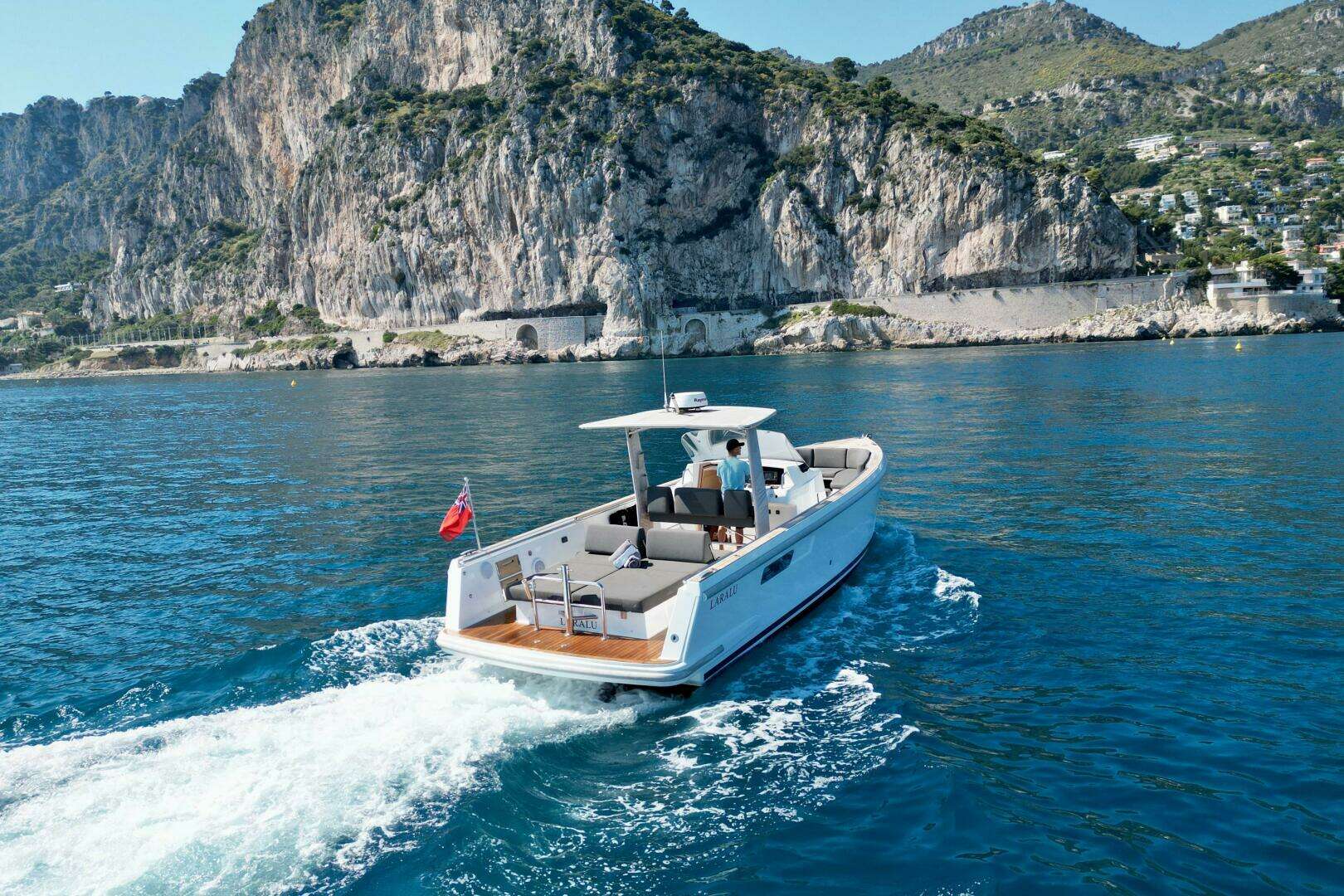 The Fjord 36’ Open is a stylish premium day cruiser that blends modern design with performance, comfort, and safety. Powered by twin 260 hp engines (520 hp total) and equipped with joystick control, it delivers smooth maneuvering, strong acceleration, and stable cruising in all conditions.
