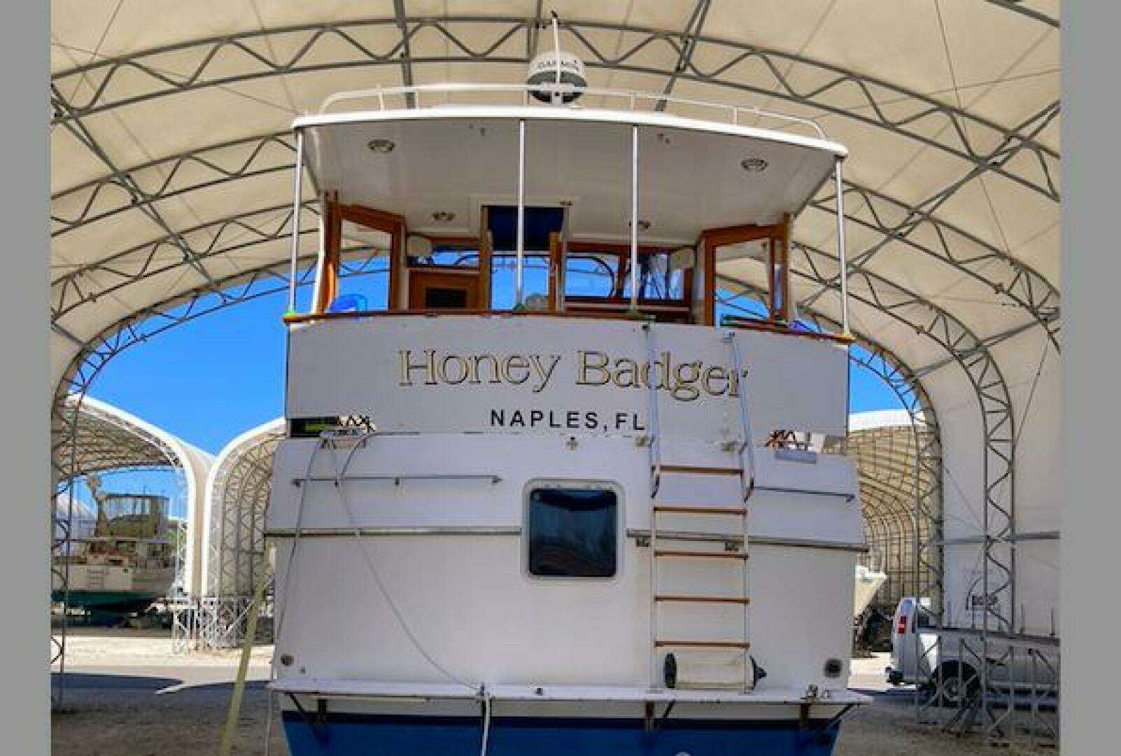 When on deck the flybridge and sundeck are perfect for navigating and watching the world go by and entertaining when you arrive. The fully enclosed flybridge can comfortably seat 6 around the helm. The covered sundeck seats those six and more, plus has a counter bar with sink. The single Ford Lehman and bow and stern thrusters are the perfect combination for economical cruising and ease of maneuvering. The starboard side lower helm station salon door also allows quick access to the side deck for easy mooring. All the decks on this Heritage are original molded fiberglass non-skid. The single Ford Lehman SP135 has a super reputation for long life, reliability and is surprisingly quiet from the upper helm making for relaxed efficient cruising. The newer twin captain chairs are perfect for the cruising couple, providing for relaxed conversations and co-piloting when under way. Add a few of your own personal touches and she’s ready for another loop adventure. Honey Badger is a special ready to cruise upgraded boat.