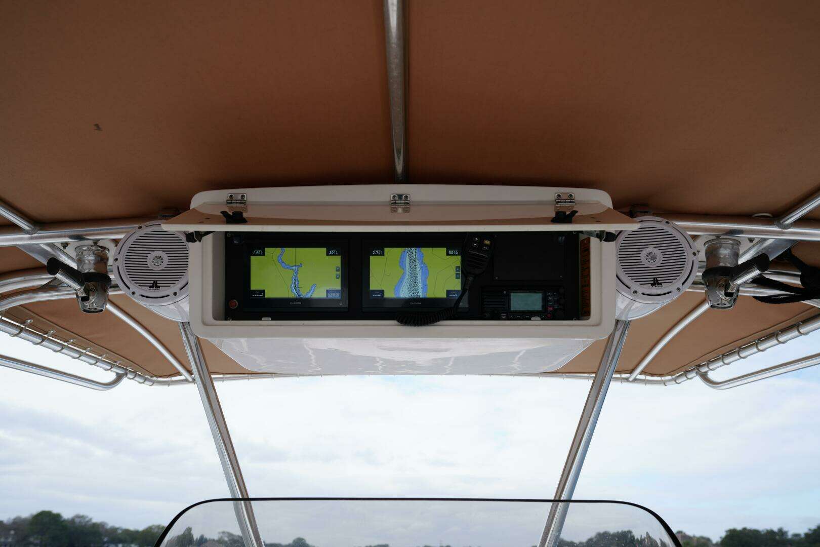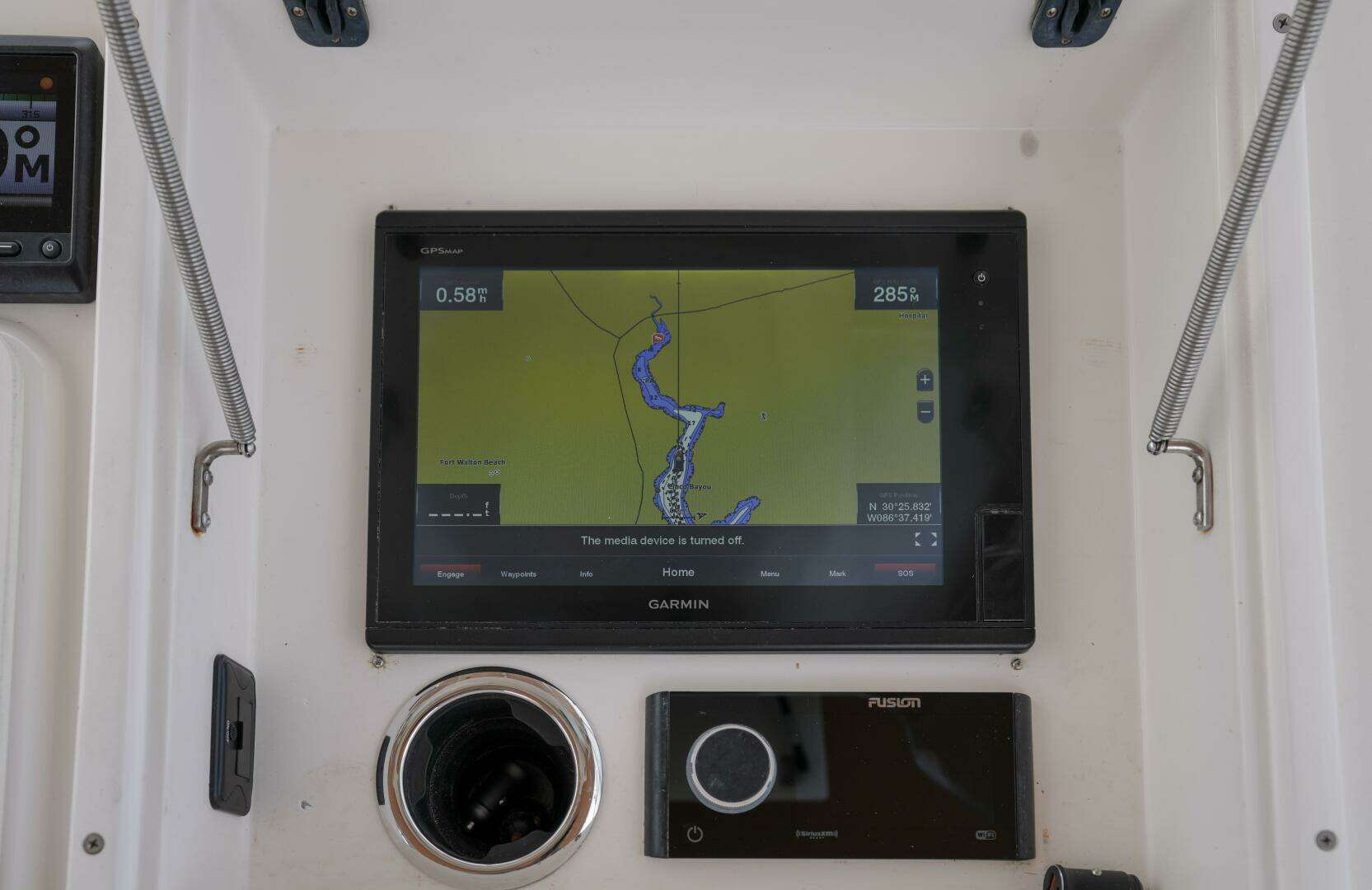 The vessel has undergone a significant refit starting in 2020, including a complete electronics overhaul (Garmin/Radar/Autopilot), new Fusion audio, new upholstery/canvas, and the addition of power-assist hydraulic steering.