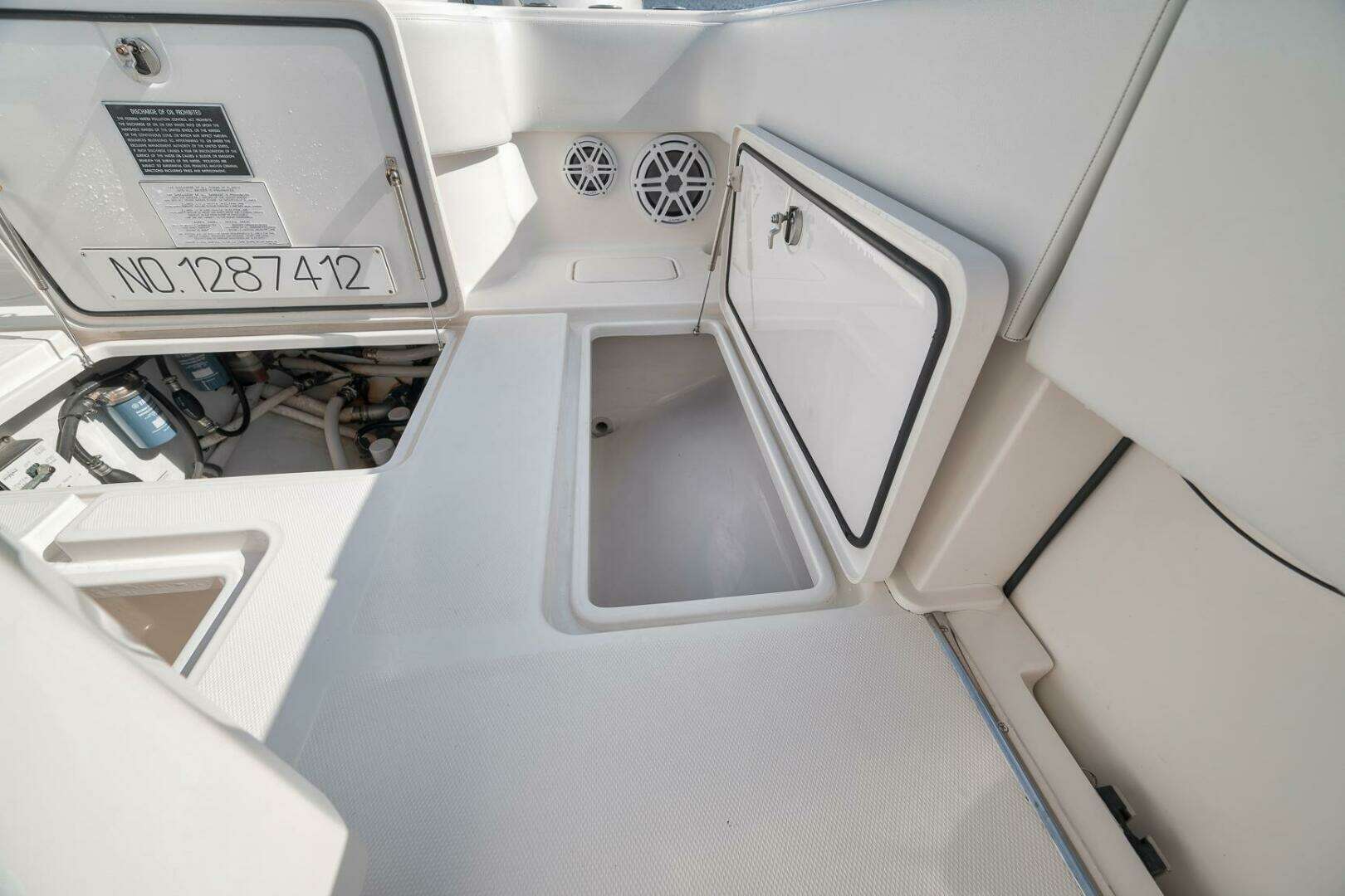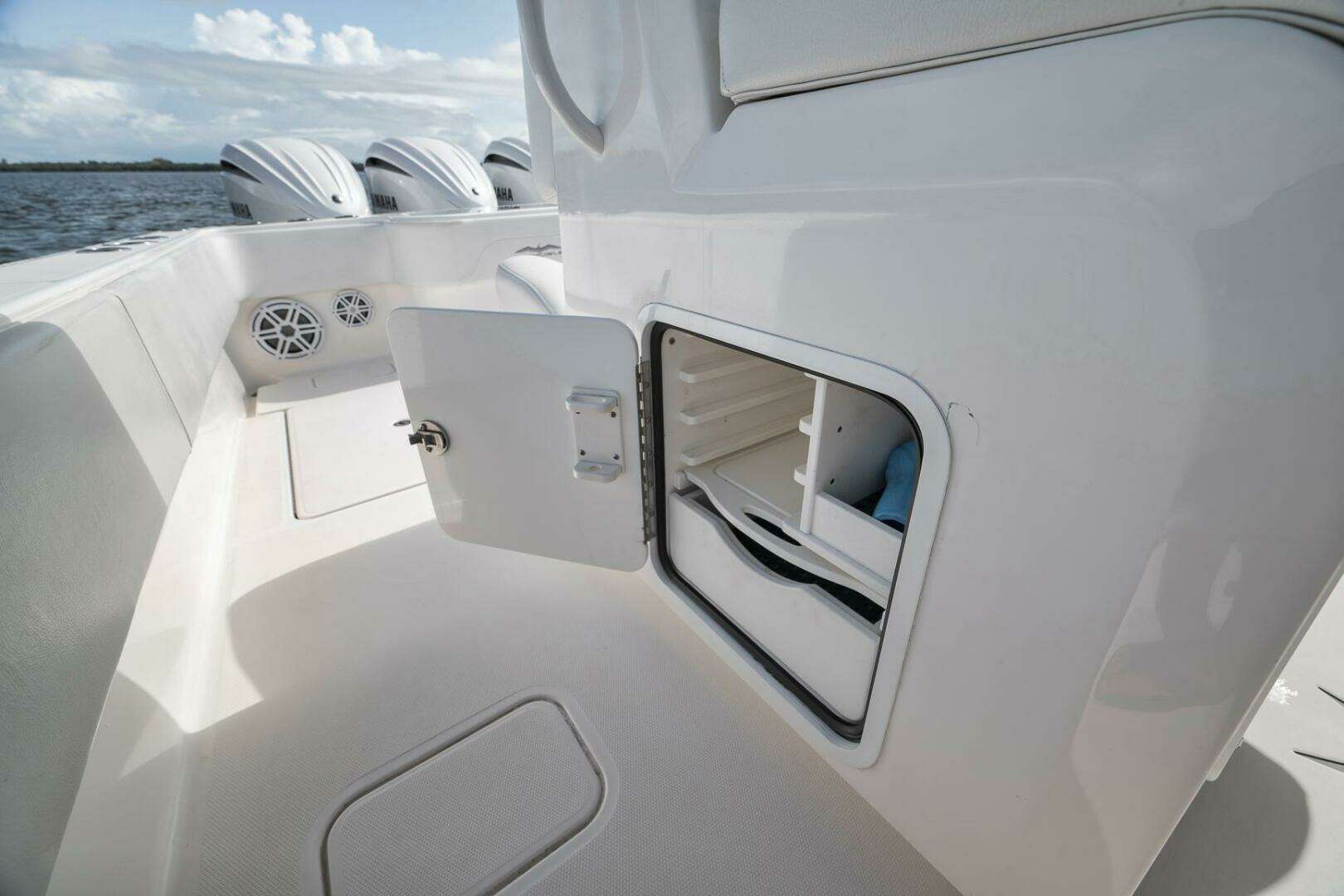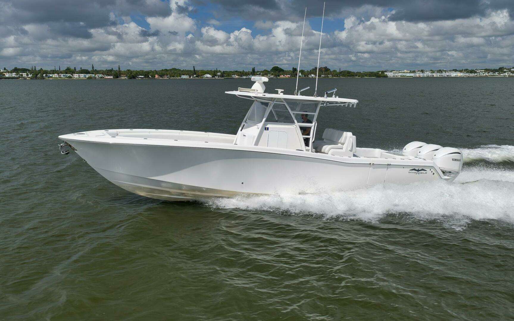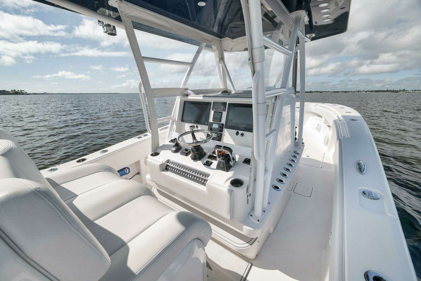 ​​This is a very clean, well maintained 36' Open Fisherman with extended warranty on her new white 300 Yamaha’s. Engine warranty is valid through 12/4/2030 and with her new motors in place efficiency has increased to 1.6gph at 34mph. Her white hull and bottom are complimented by a navy blue hardtop, all new white upholstery throughout. She is equipped with forward seating (currently removed from the boat), side door, and full Garmin package to accomplish all your offshore needs.