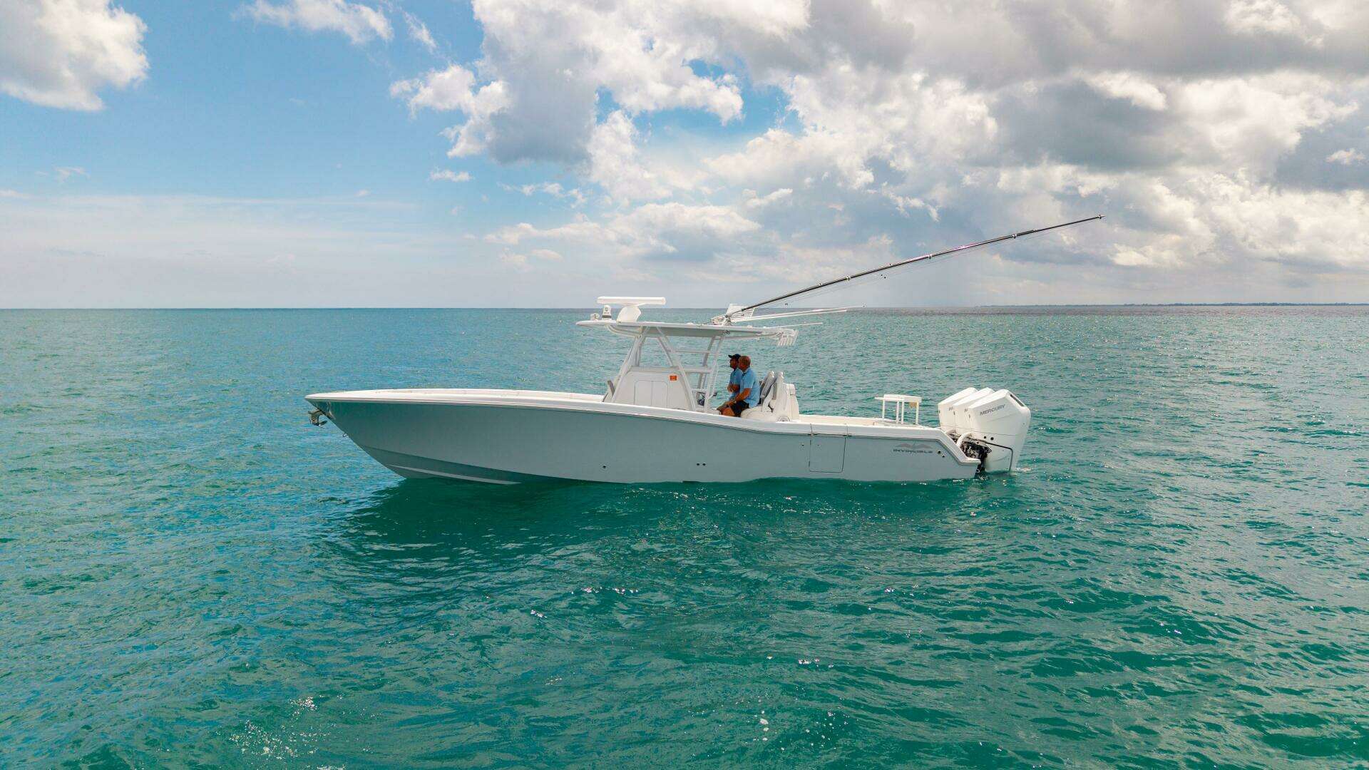 Powered by triple Mercury 400 V10 Verados with joystick control, and outfitted with premium Garmin electronics, FLIR, Gemlux outriggers, and an upgraded JL Audio system, this turn-key package blends performance, fishability, and comfort.