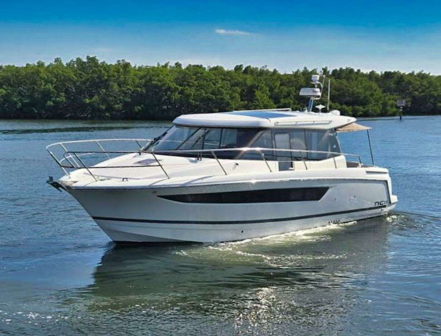 A very nice opportunity to own this 2018 Jeanneau NC11. She has been well kept for by her owner and lightly used for weekend cruising. An easy day boat operating with two or six passengers with overnight accommodations. Stepping onboard you will notice the cockpit seating and warm feel teak deck. Stepping inside you will se she has nice deckhouse windows which allow for lots of natural lighting and an easy to see 360-degree view. Retractable doors which go to port or starboard. Also, a large dining table and seating area which allows you to face forward or turn down. Stepping down below you will see the forward berth, head, and guest stateroom. Powered with twin diesel stern drives which allows for easy maneuverability and bow thruster for a bonus. Let’s not forget about the powered sunroof for those beautiful sunny days!!