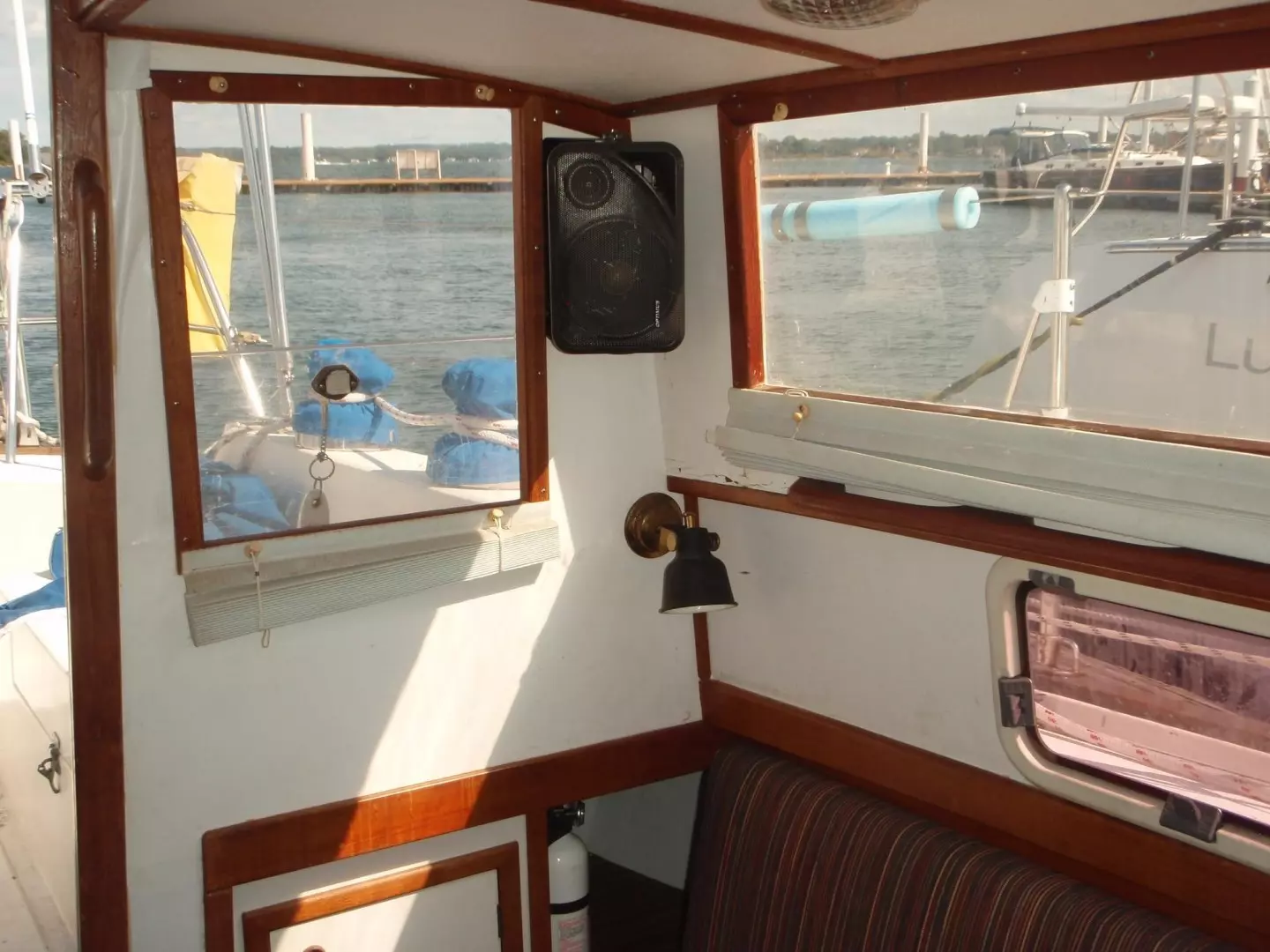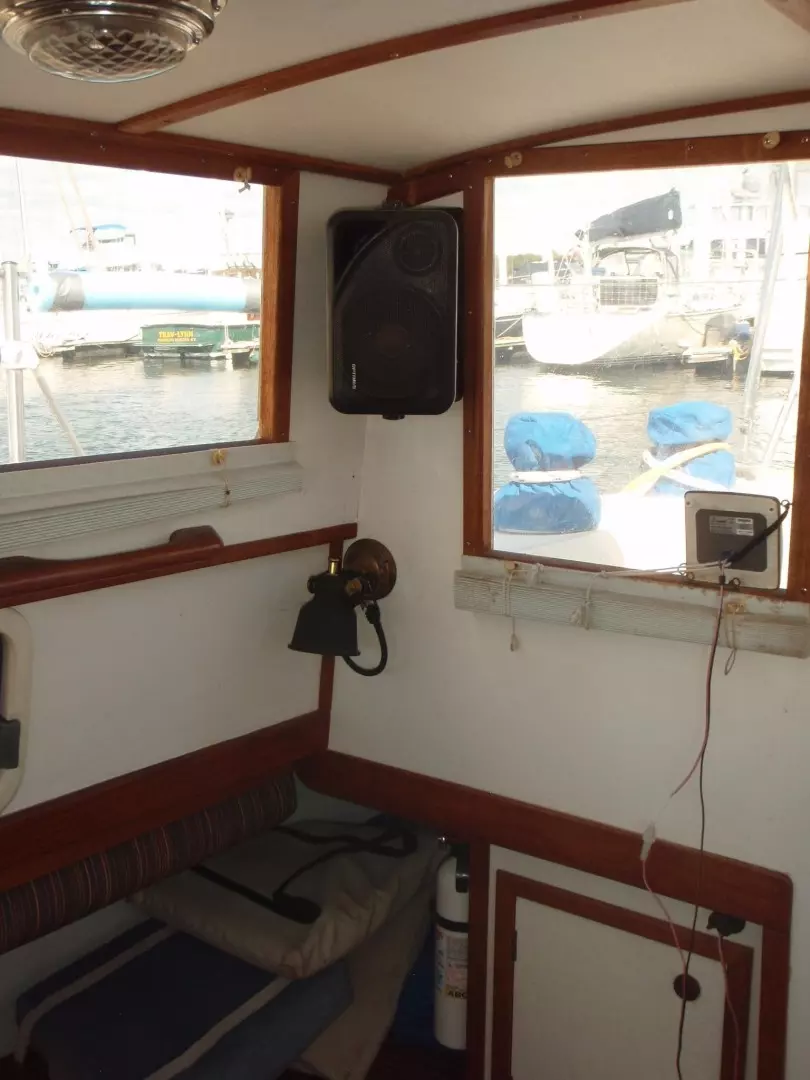 Sleeps 6, 2 in large vee fwd, 2 on convertible dinette, 2 in large convertible settees/quarter berths in pilothouse, PVT head fwd w/shower, rebuilt Groco head, new fresh water and shower sump pumps, updated upholstery, galley down w/microwave, propane stove & oven w/new valves, large ice box, dinette opposite w/lovely oil lamp, teak/holly sole, great storage