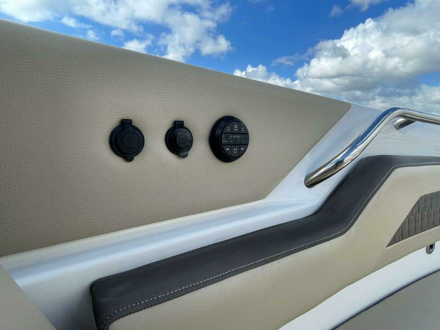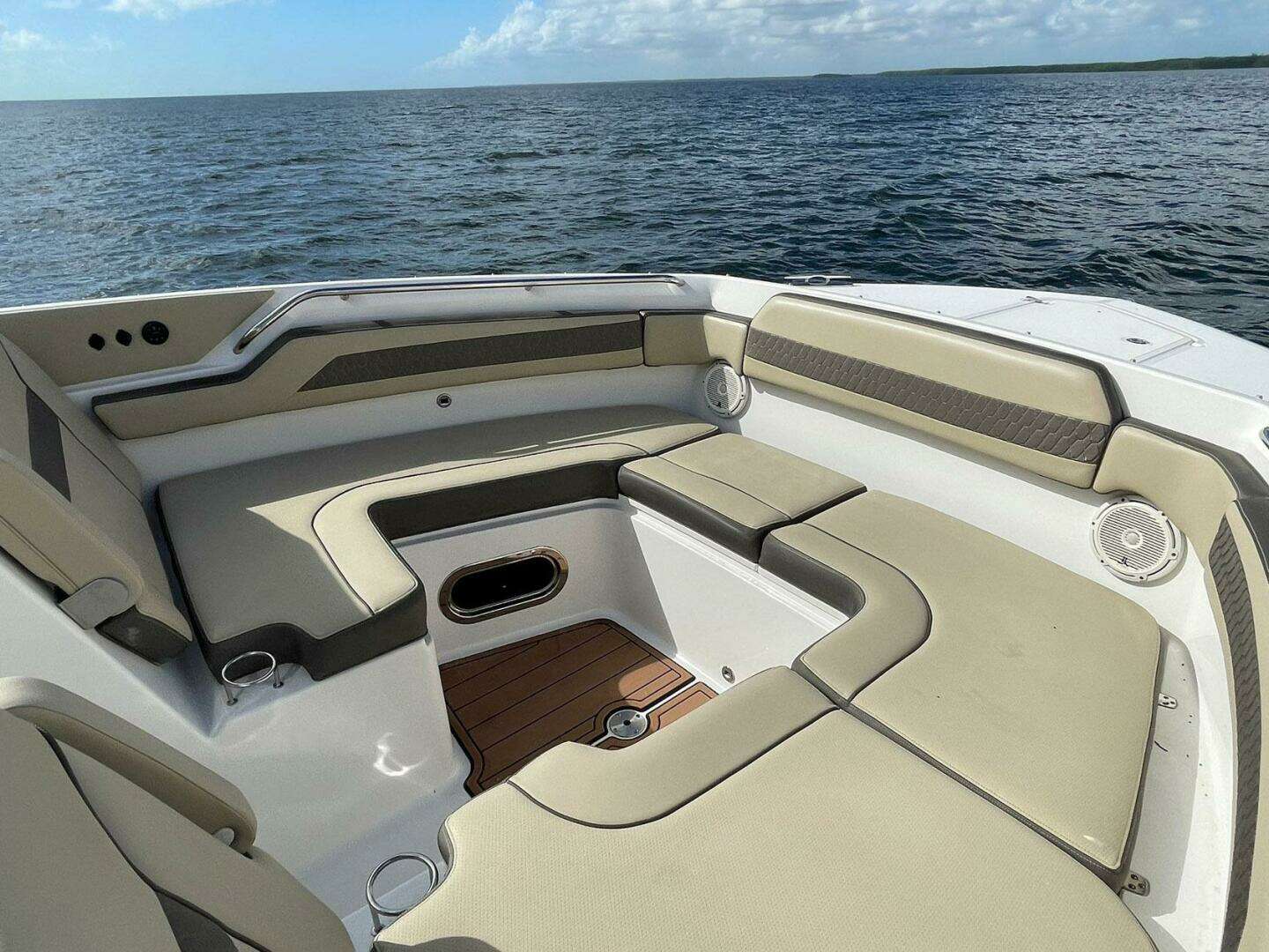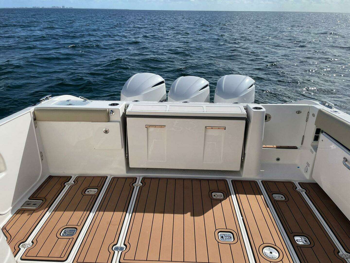 This boat was wrapped Navy Blue since it was new, the owner removed the wrap in October 2025 and it has fresh unexposed white gel coat hull sides now. Freshly compound and waxed as well.