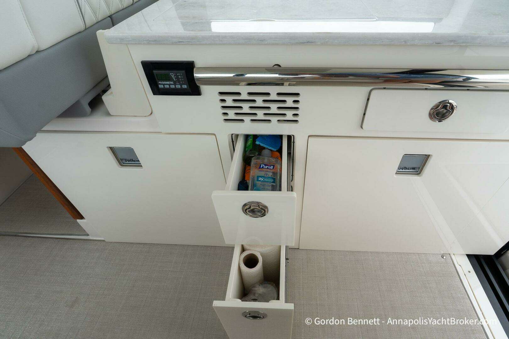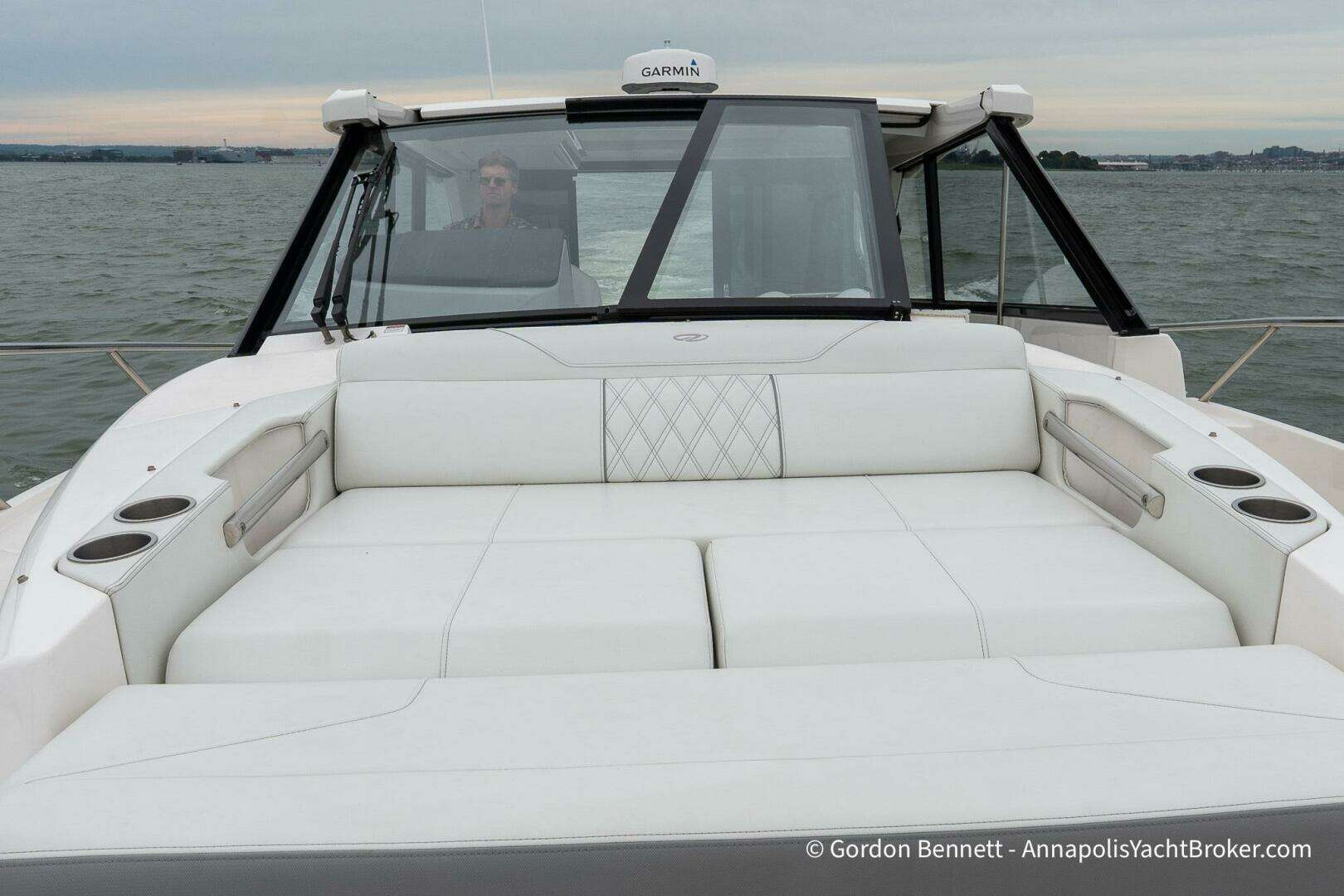 - Seakeeper stabilization keeps her comfortable even when afternoon chop builds across the Bay