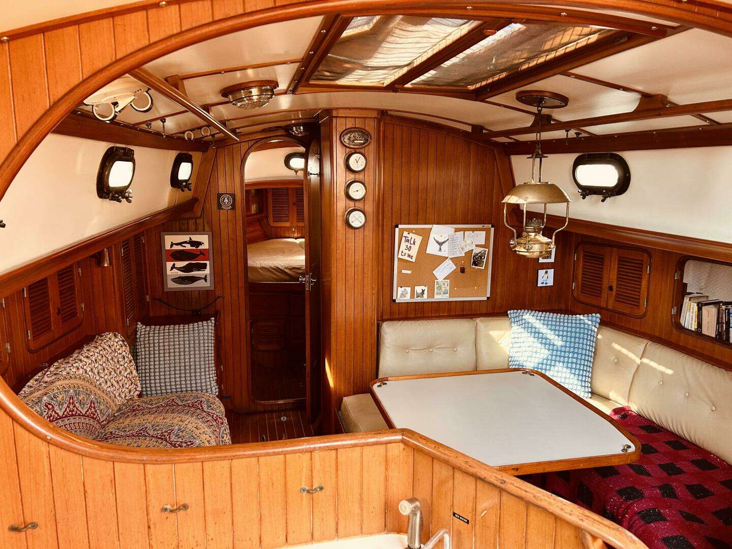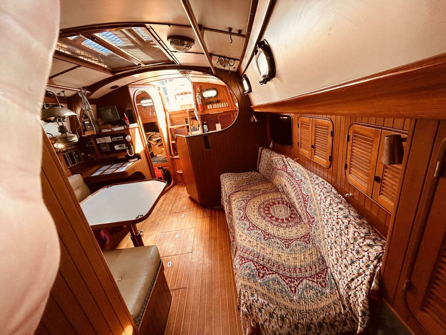 Alabare is Hull #3 of this fantastic Bob Perry design. The Tashiba 36 evolved from his earlier work - such as the Baba 40 - into what Perry claims is his best full-keel, double-ender design. He notes that he made the turn to the bilges "more firm for increased stability," which helped the boat sail "incredibly well". He adds that it was fast and close-winded enough to compete with many fin-keel designs. As a testament to her seaworthiness, the Tashiba 36 is one of only 20 designs approved for the Golden Globe Race. The Ta Shing craftsmanship is second to none and the interior is a remarkable example of fine joinery. Sounds cliche, but they do not make boats like this anymore!