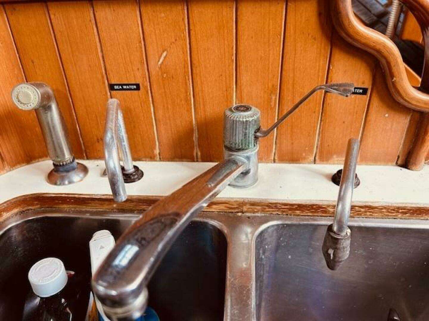 - Twin stainless sinks with hot and cold pressure water as well as a manual fresh & sea water pumps