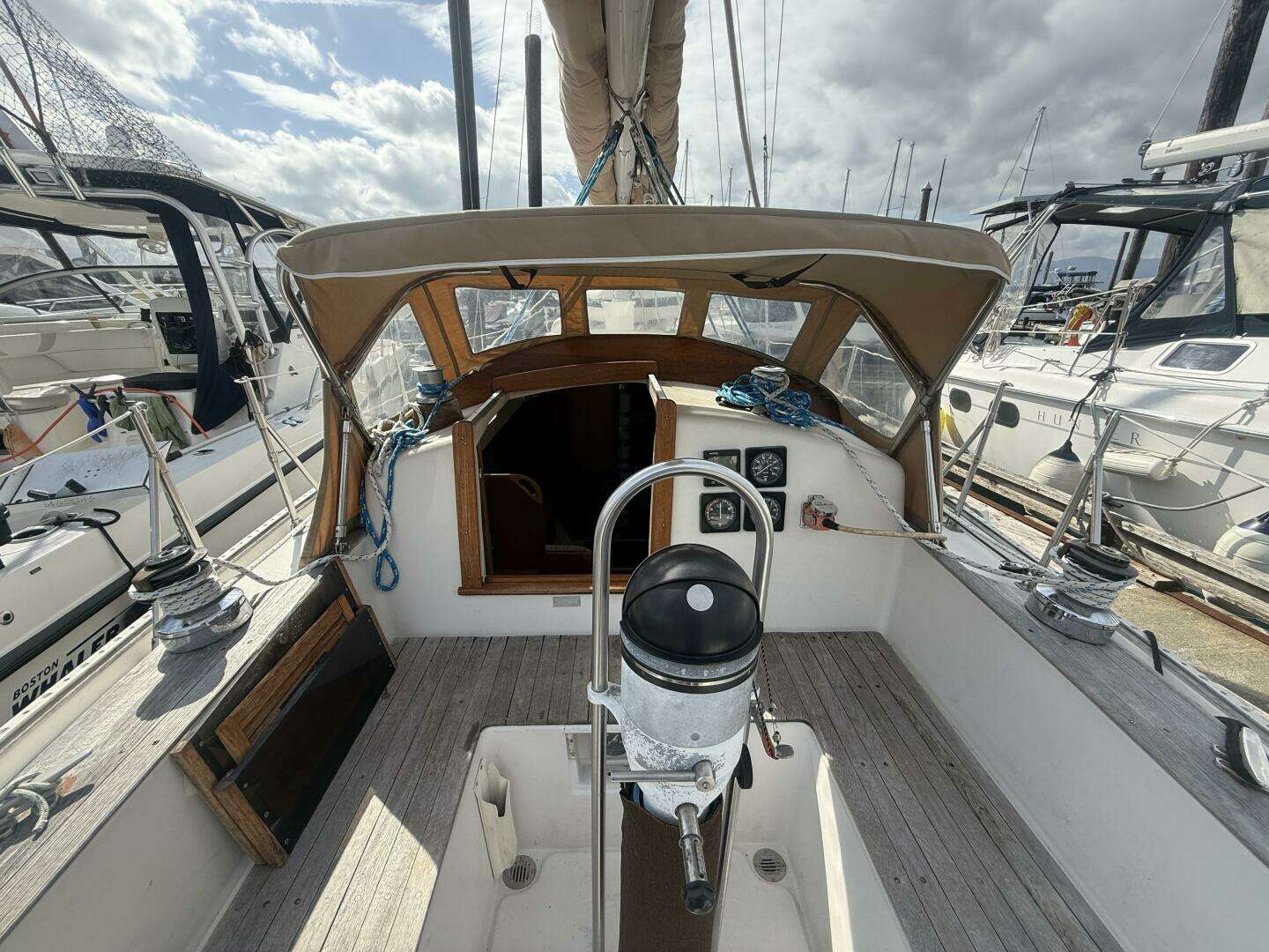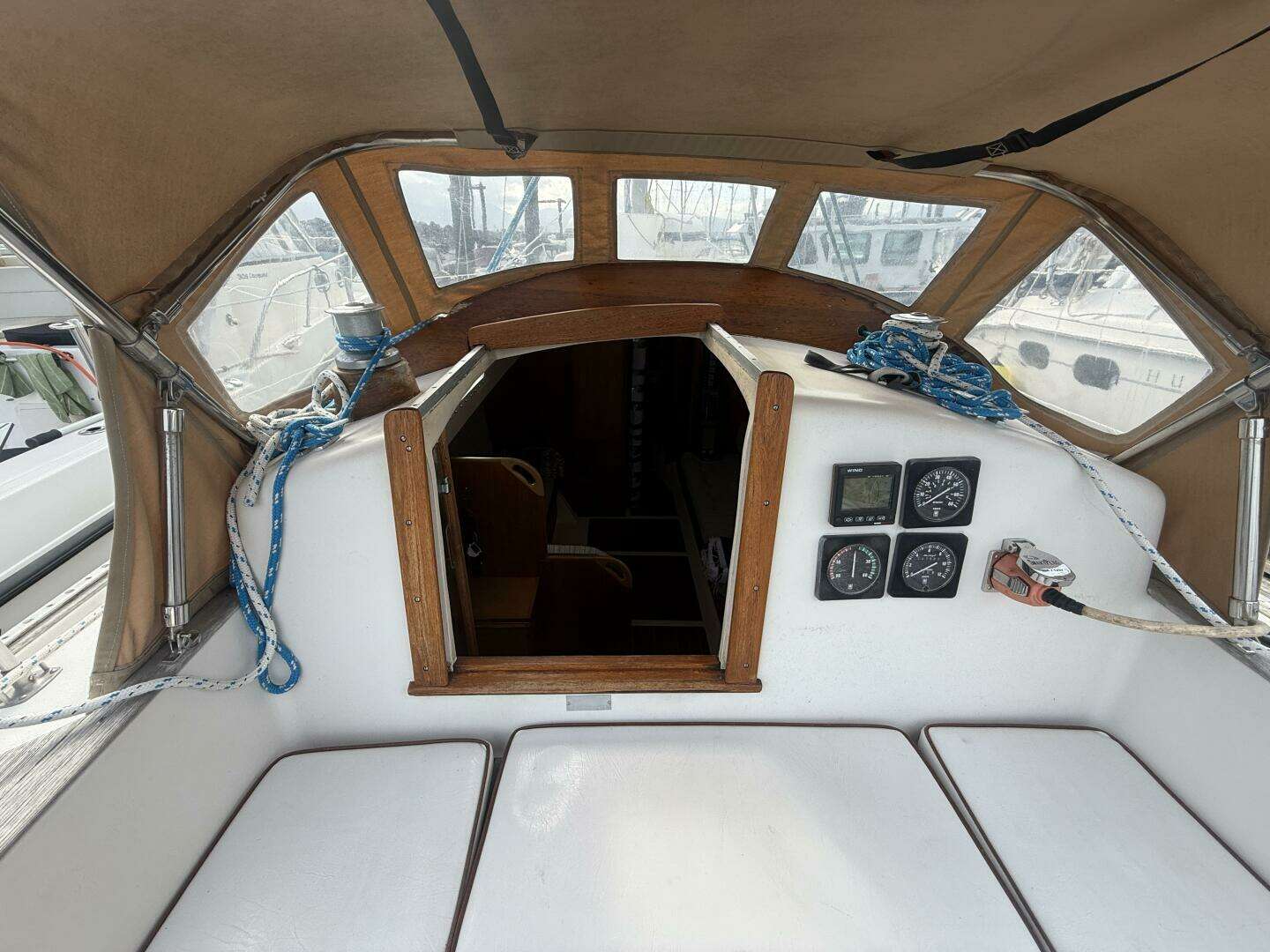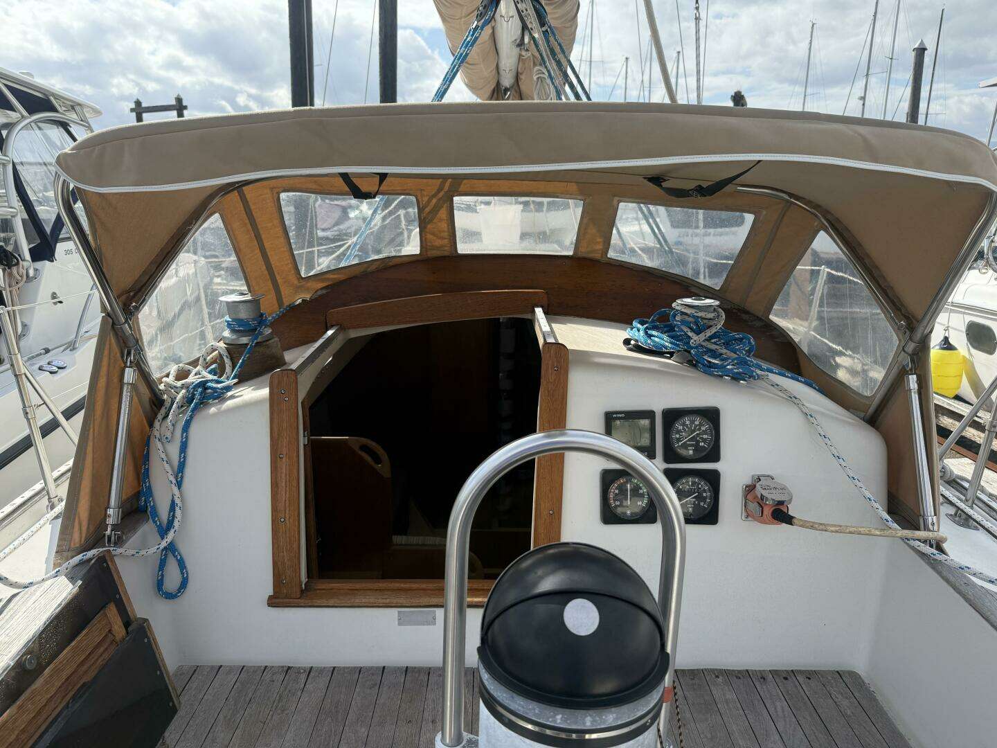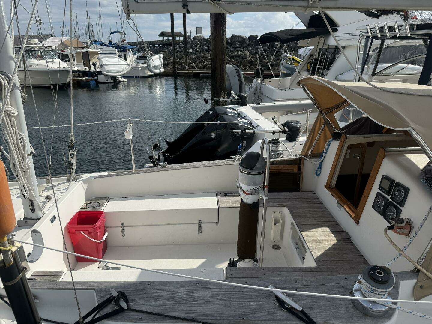 | Equipped for cruising with diesel heater, hot water heater, manual windlass, and Bruce anchor system. |
