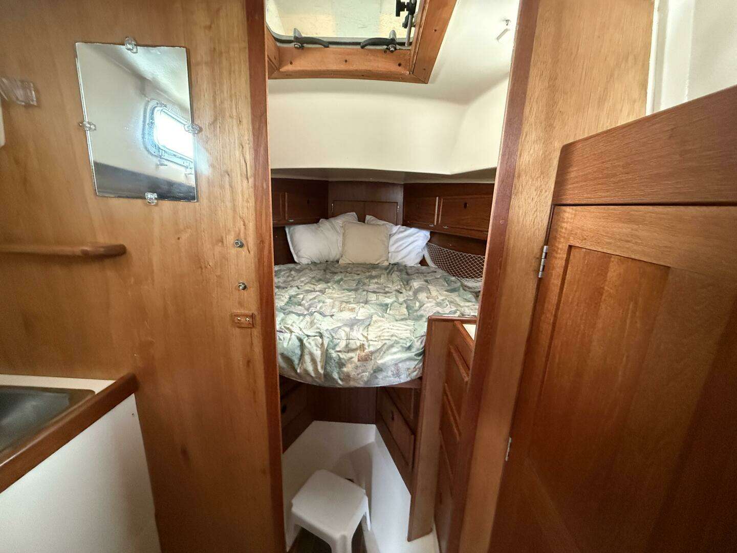 Spirit is a 1981 Alberg 37 Mk II, a respected bluewater cruiser with the strength and elegance Carl Alberg’s designs are known for. She has been thoughtfully maintained and upgraded, making her a reliable choice for extended cruising or local sailing. Her 30 HP Isuzu diesel shows only 309.9 hours, and recent service included replacement of the rear engine mounts. The Doyle sail plan consists of a roller-furling jib, main with two reef points, and a mizzen, supported by a Harken Mark III furler and updated rigging components.