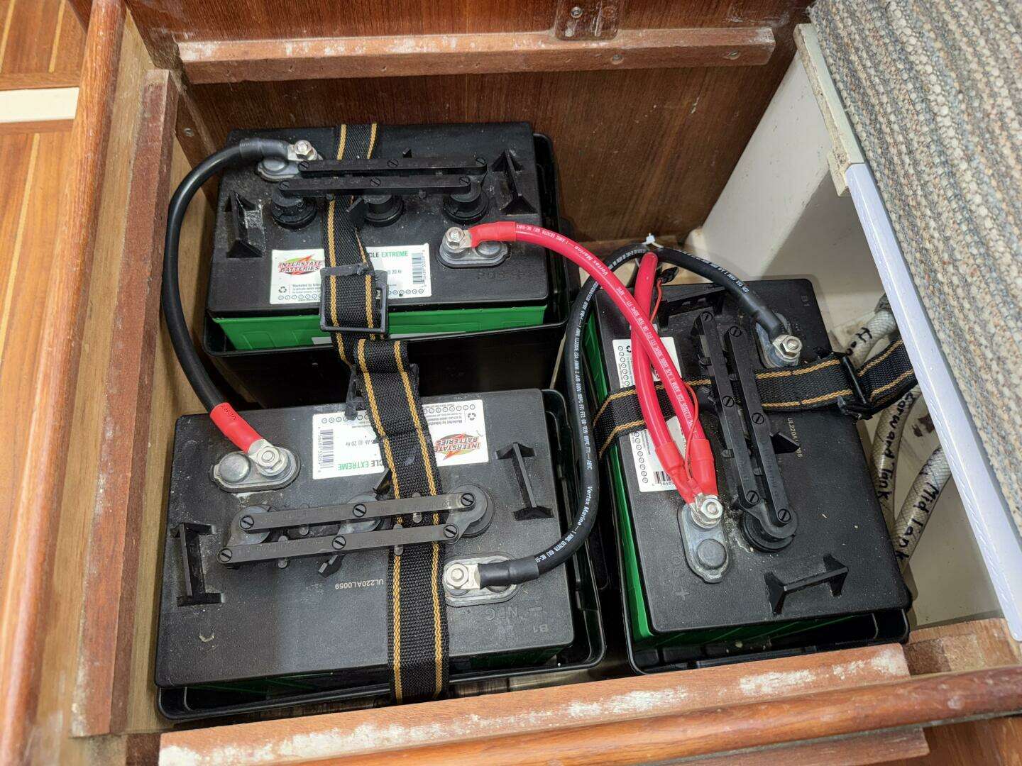 450Ah Interstate battery bank with new cabling (2021)