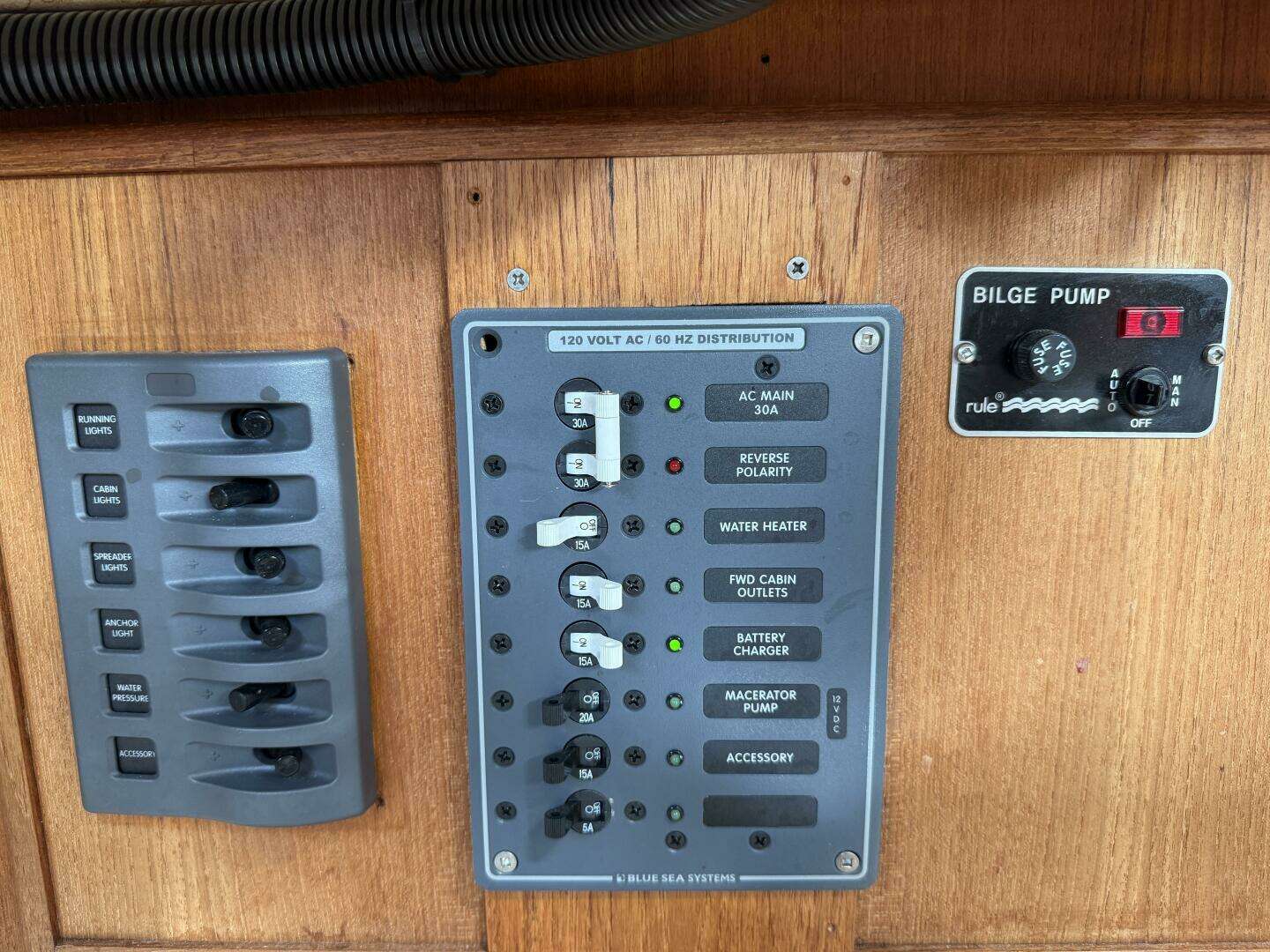 | 2021 full electrical refit with 450Ah battery bank, Blue Sea panels, Smart Plug, and mast wiring. |
